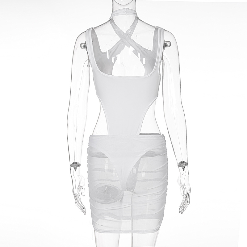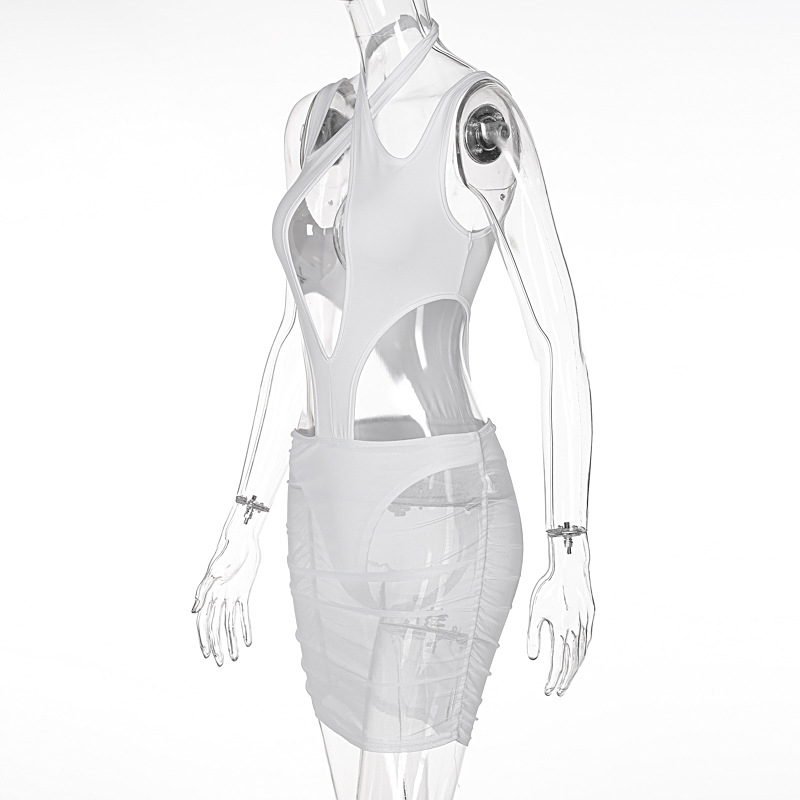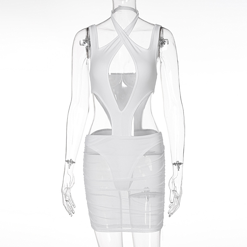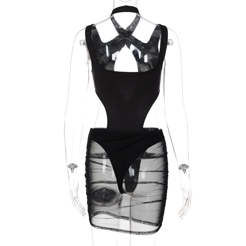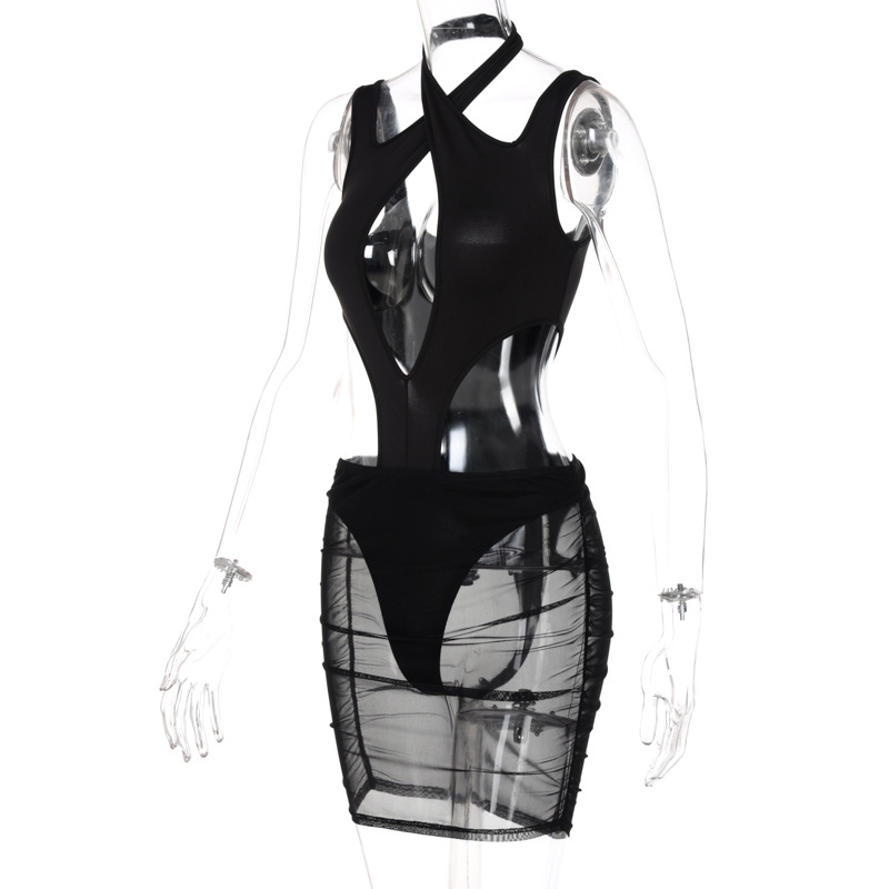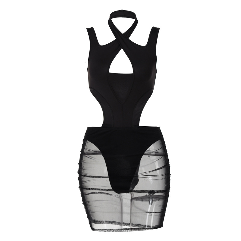 Style 2021 Summer New Women Solid Color Sleeveless Sexy Mesh Stitching Hollow Dress