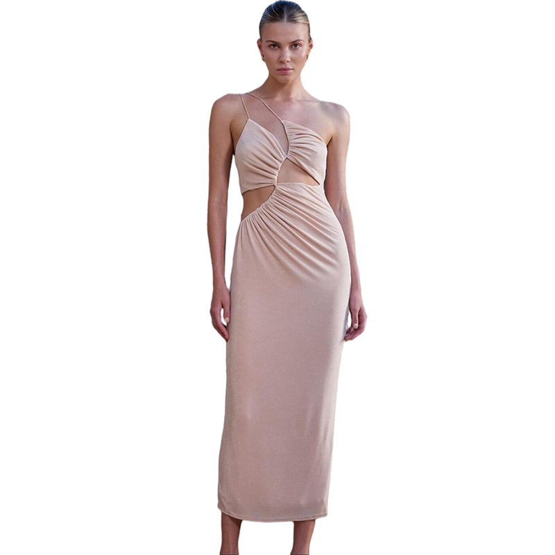 Style Spring Summer New Women Clothing Sexy Backless Spaghetti Straps Oblique Shoulder Temperament Slim Hollow Dress Women