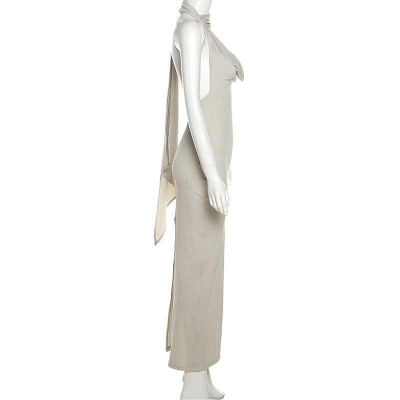 Summer Trends Women Halter Backless Slim Fit Sheath Solid Color Dress