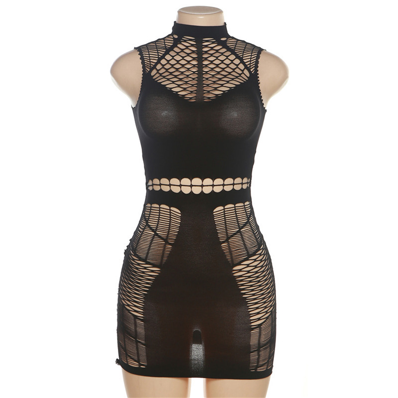 Summer Women Clothing Sexy Mesh See through Hollow Out Cutout Slim Sheath Dress
