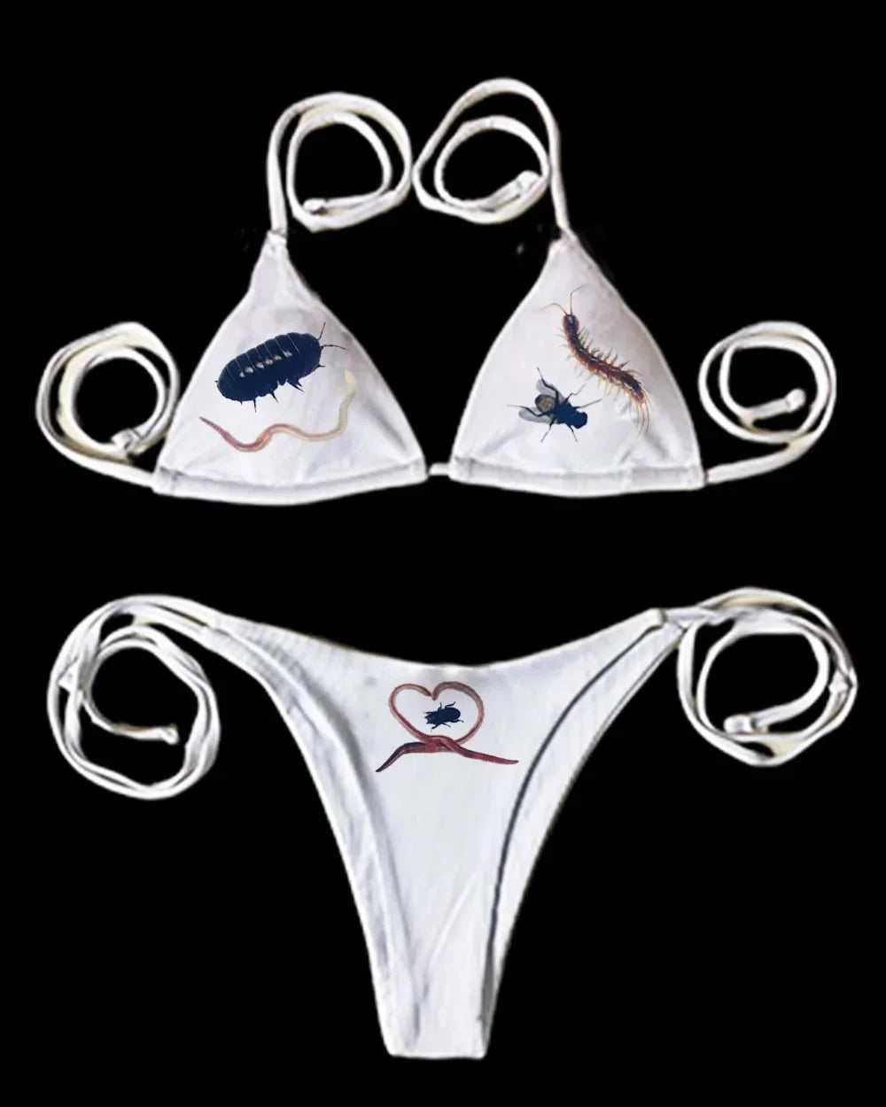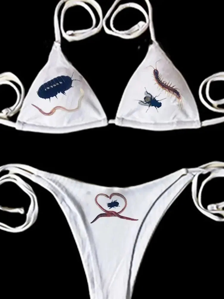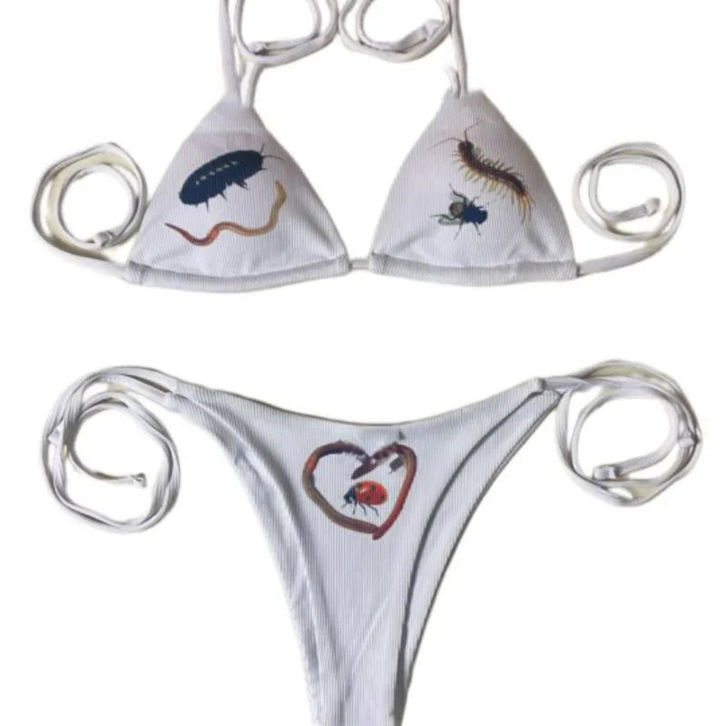 Swimwear kawaii print Women's Sexy Bikini Set Push-up feminine Thong swimsuit Two Pieces Beachwear Bathing Suit 2024 trend Femme