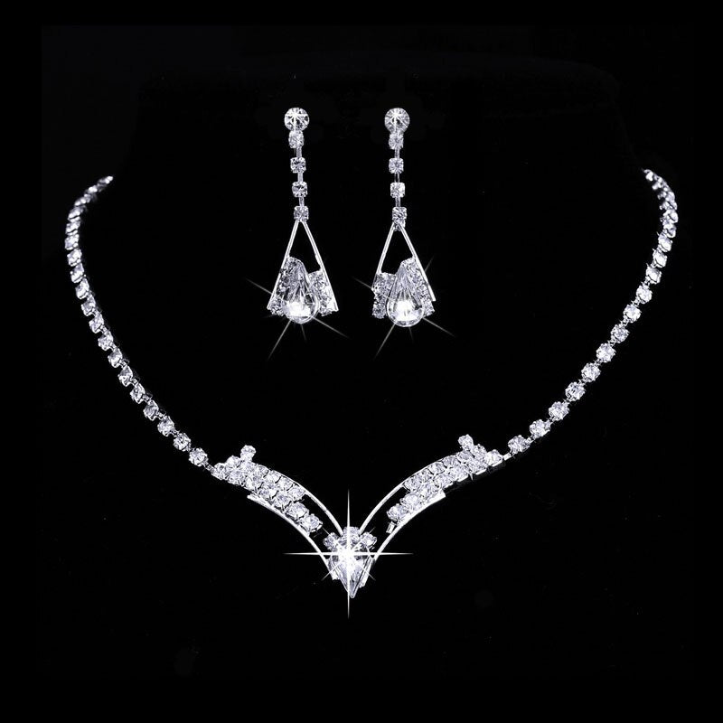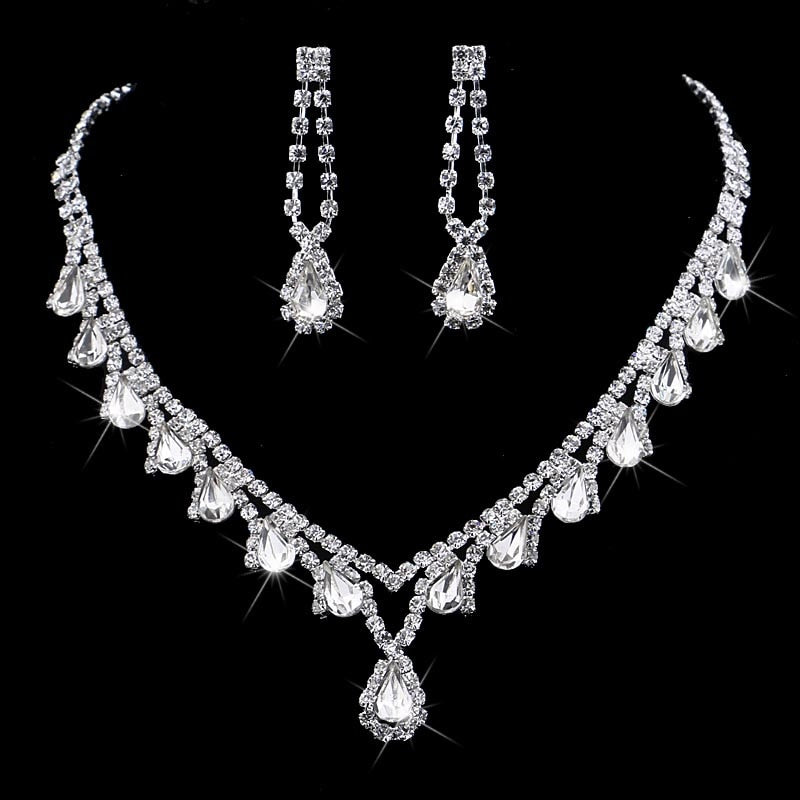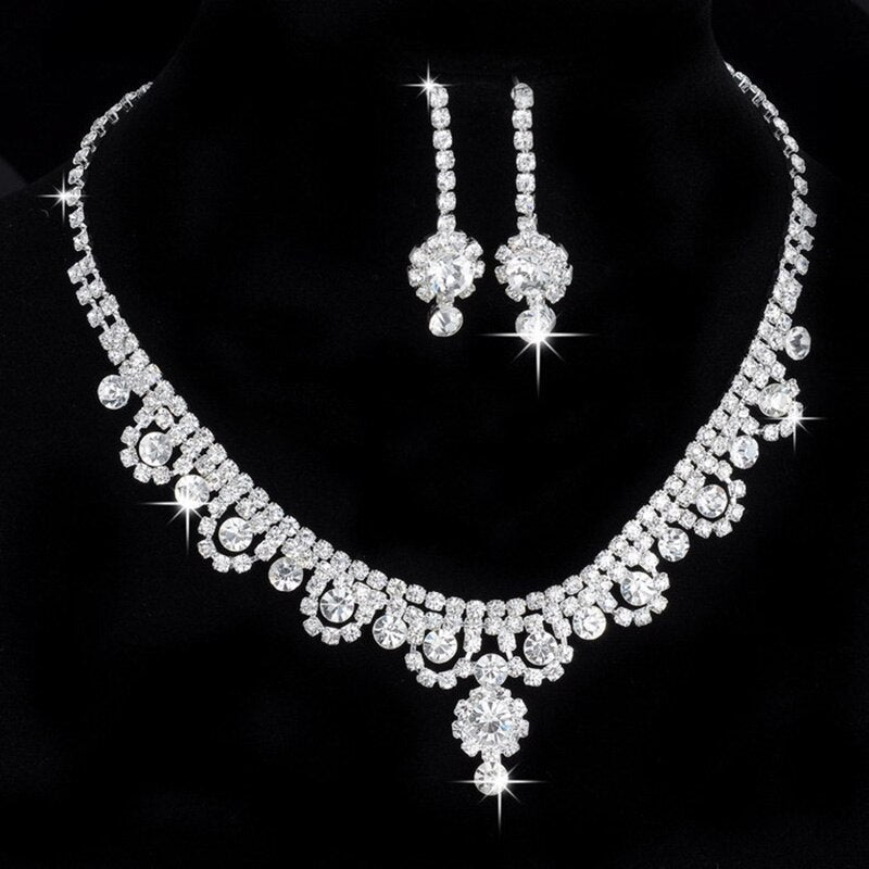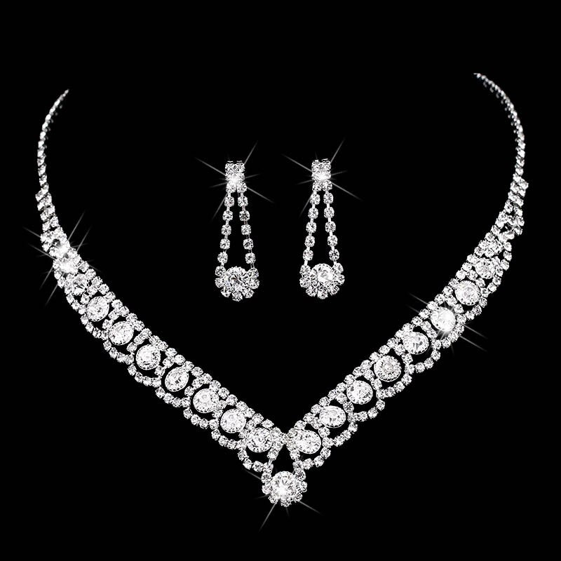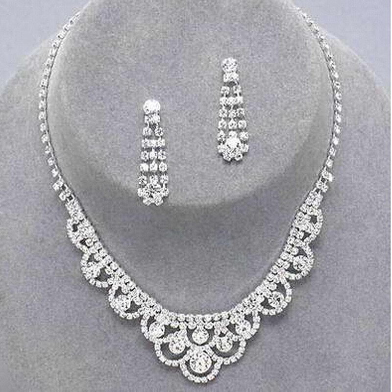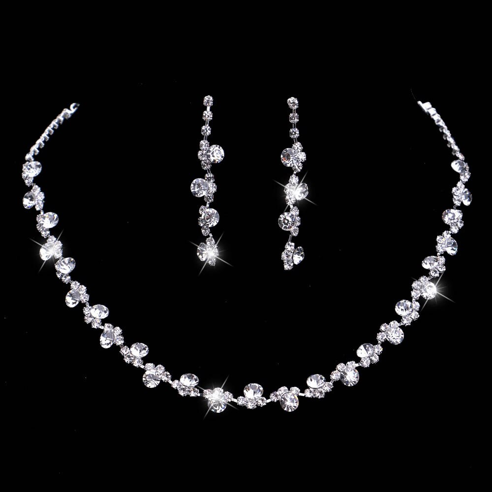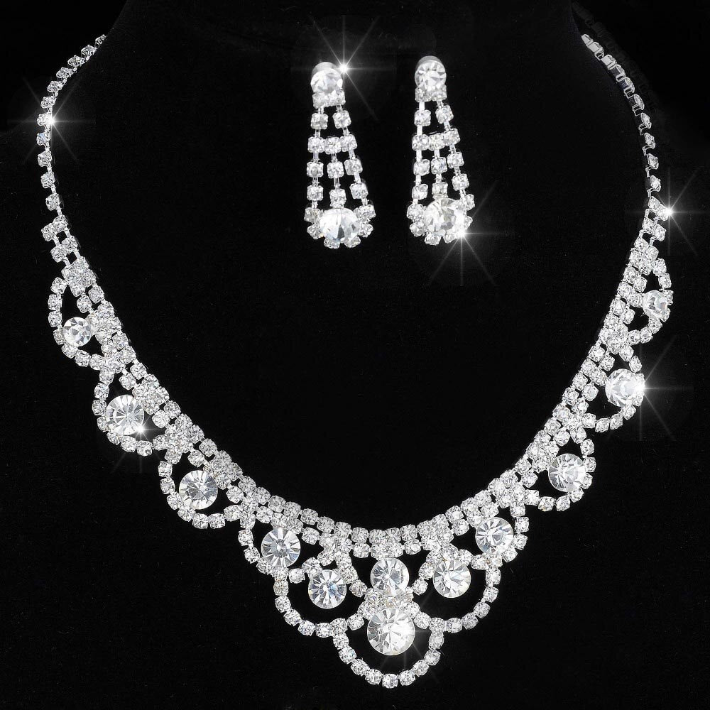 TREAZY Fashion Bridesmaid Bridal Jewelry Sets for Women Rhinestone Crystal Necklace Earrings Sets Statement Wedding Jewelry Sets