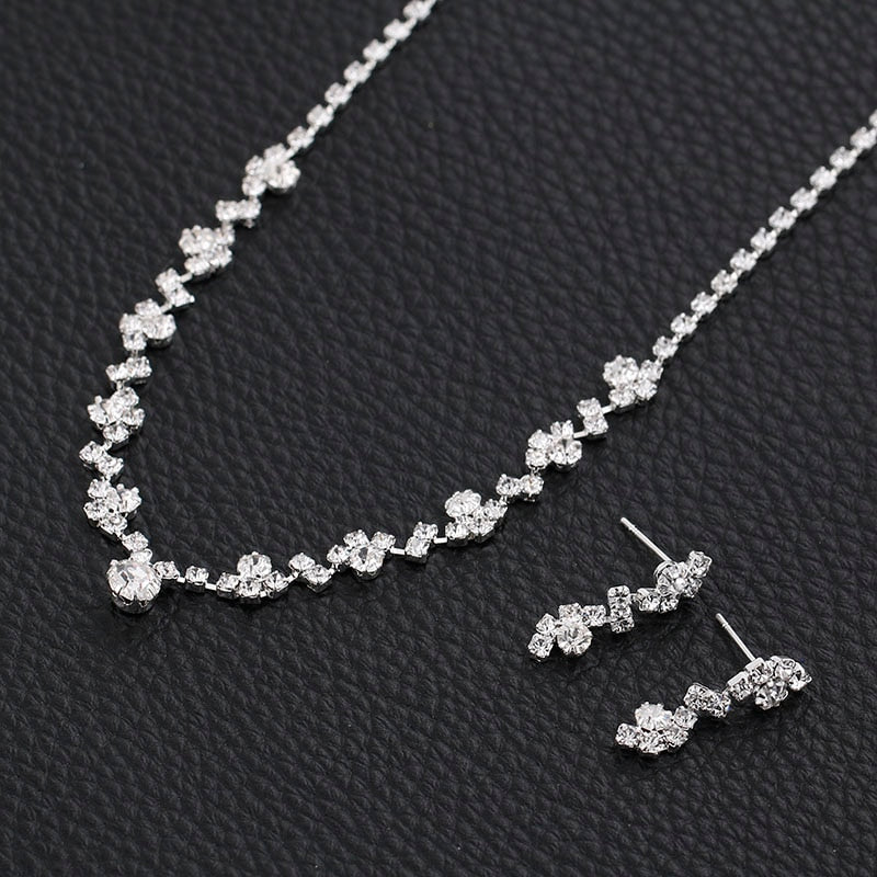 TREAZY Simple Style Crystal Bridesmaid Bridal Wedding Jewelry Sets Rhinestone Choker Necklace Earrings Bracelet Set for Women