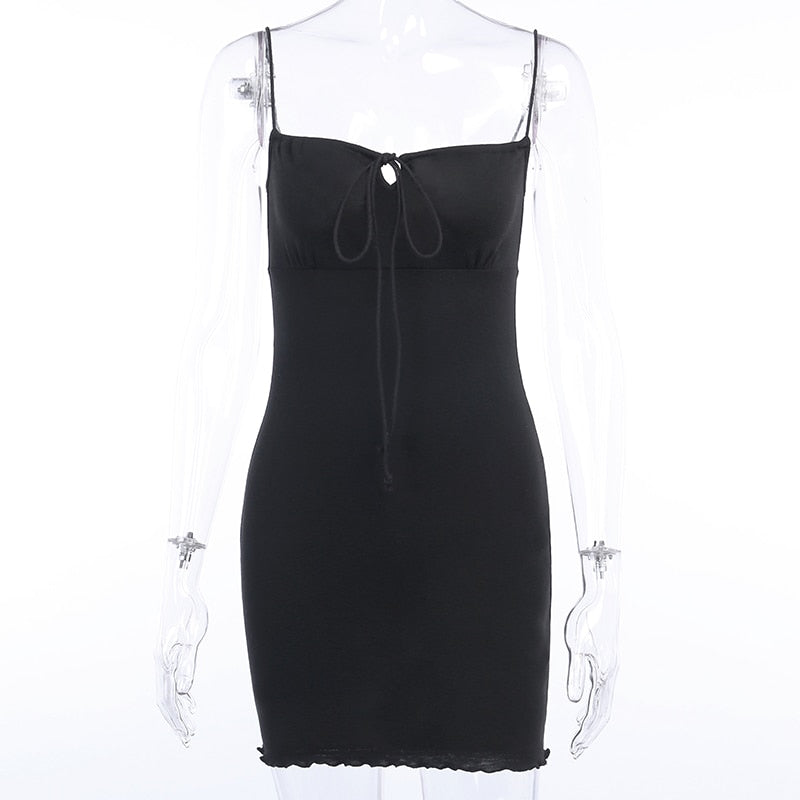 Black Cotton Front Bandage Sleeveless Spaghetti Strap Mini Dresses