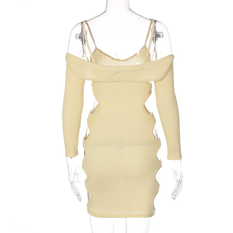 Winter New Popular Side Hollow-out Long-Sleeved Waistcoat Strap Dress Women Opera Glove