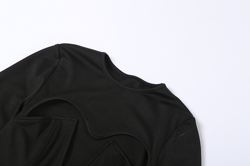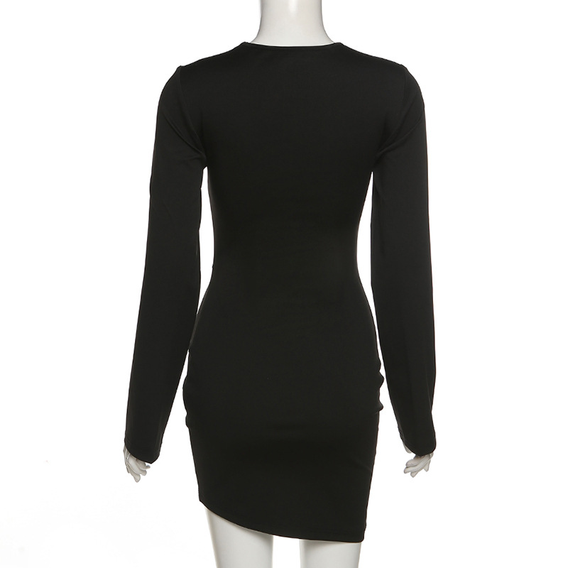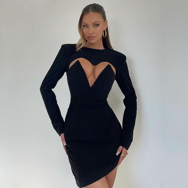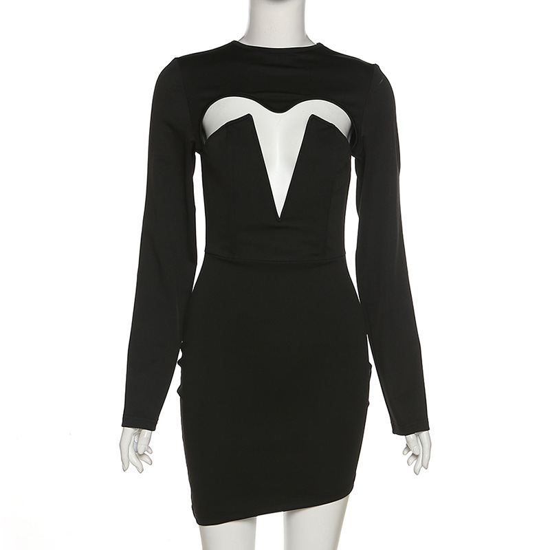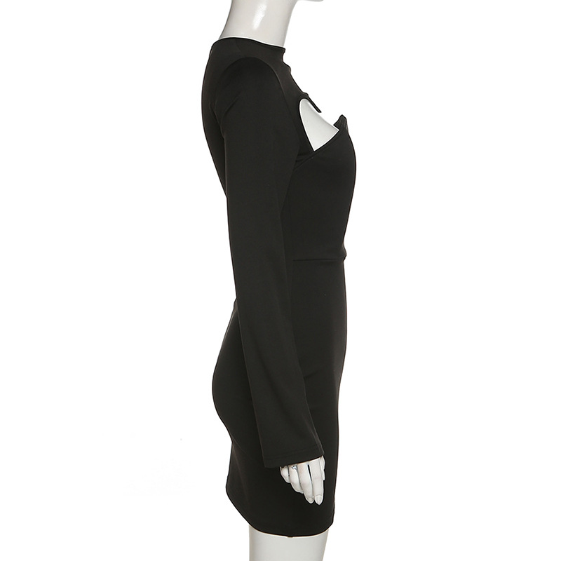 Winter New Women Clothing Fashion round Neck Long Sleeve Sexy Cutout Slim Sheath Dress