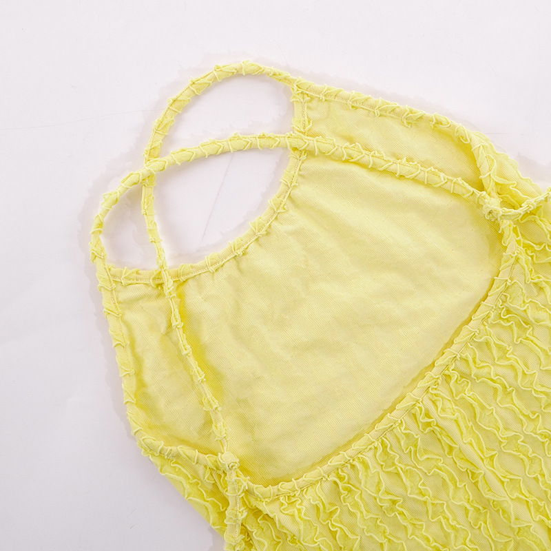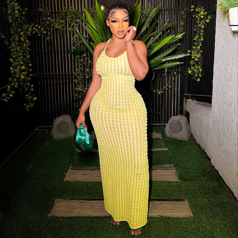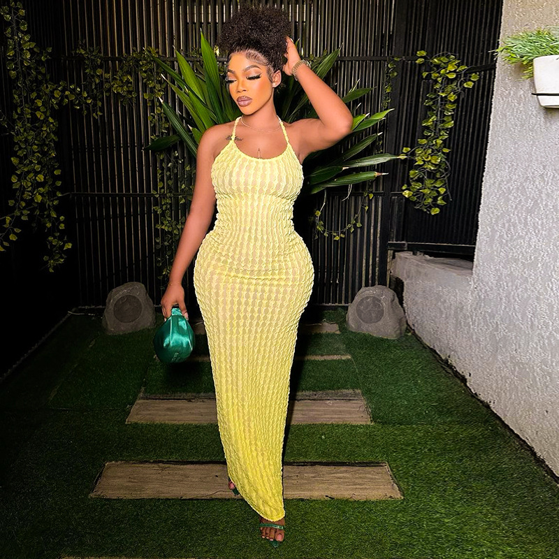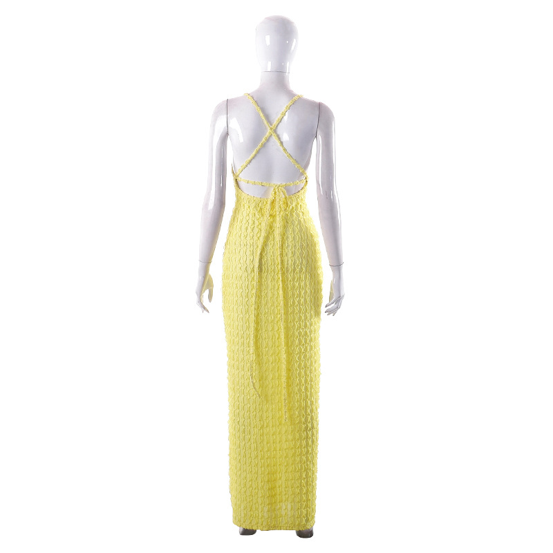 Women Clothing Spring Summer Wave Cross Strap Backless Slim Fit Maxi Dress