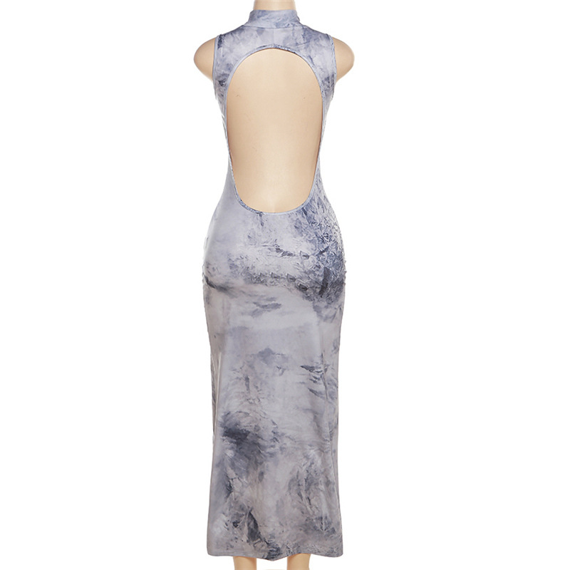 Sexy Backless Slim Fit Dress – Abstract Print Design