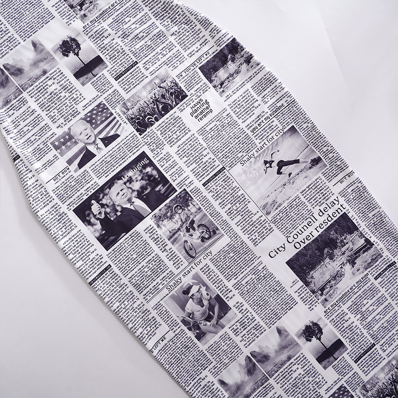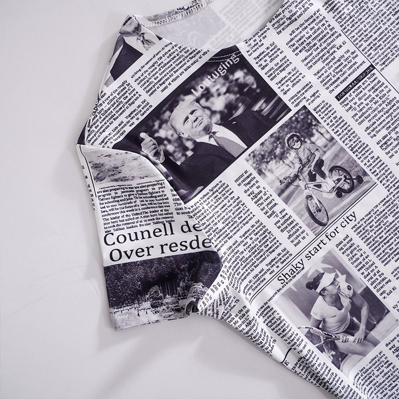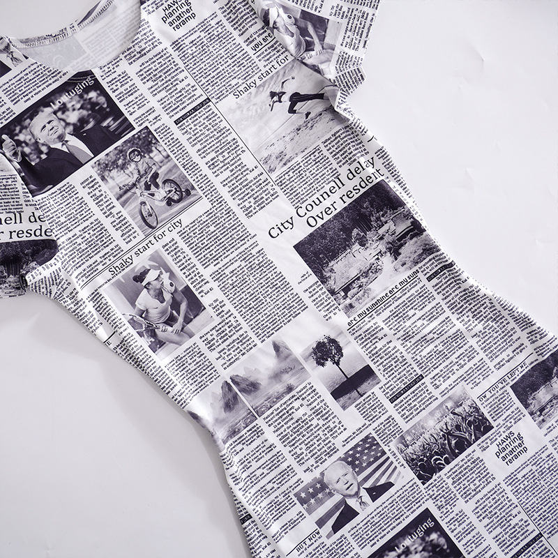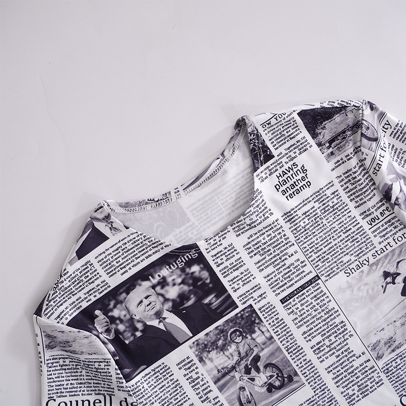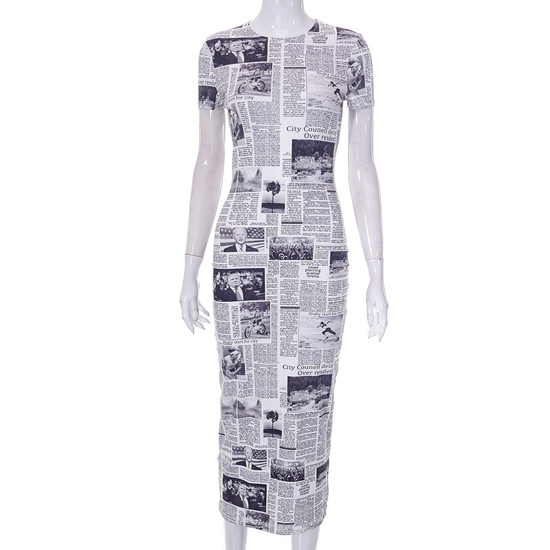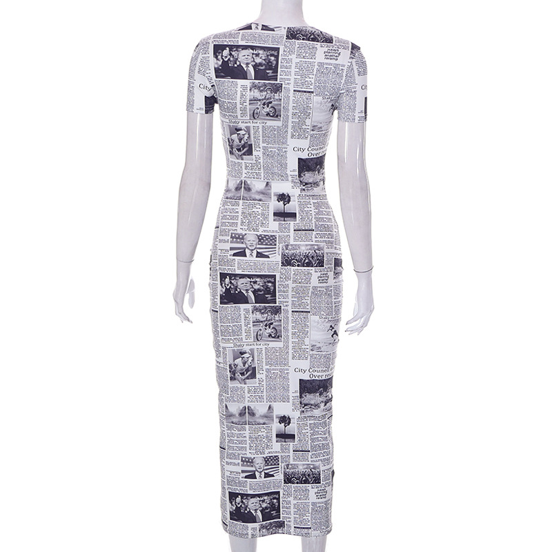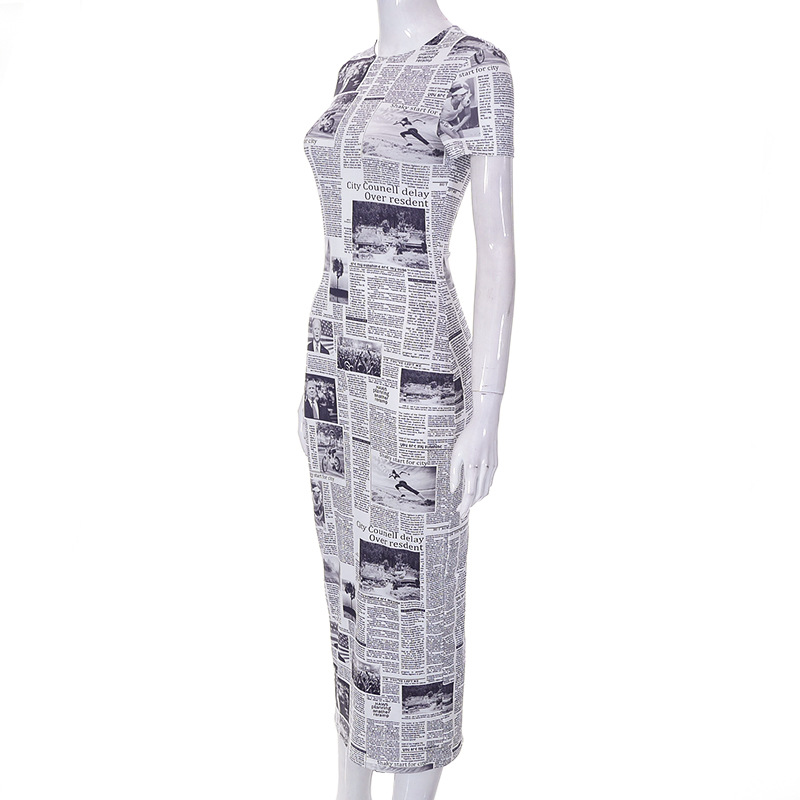 Women Clothing Summer Newspaper Printed Casual Short Sleeve Slim Dress