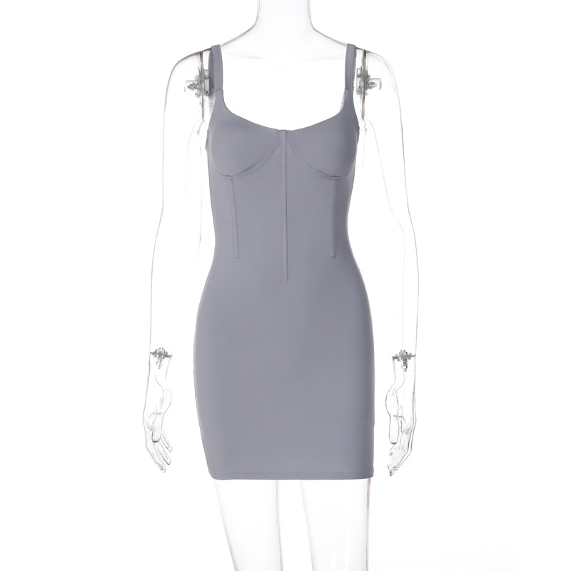 Women Clothing Summer Sexy Backless Slim Fit Solid Color Strap Dress