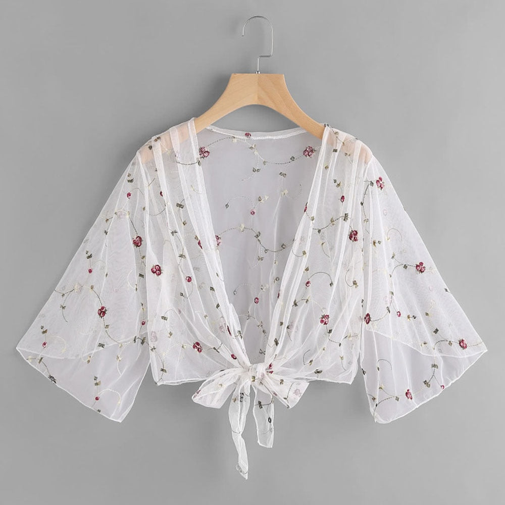 Long Sleeve Beach Cover Up Bathing Suit Swimsuit Floral Tops Cardigan Thin Coat Casual Party Outwear Blouse Cover Up