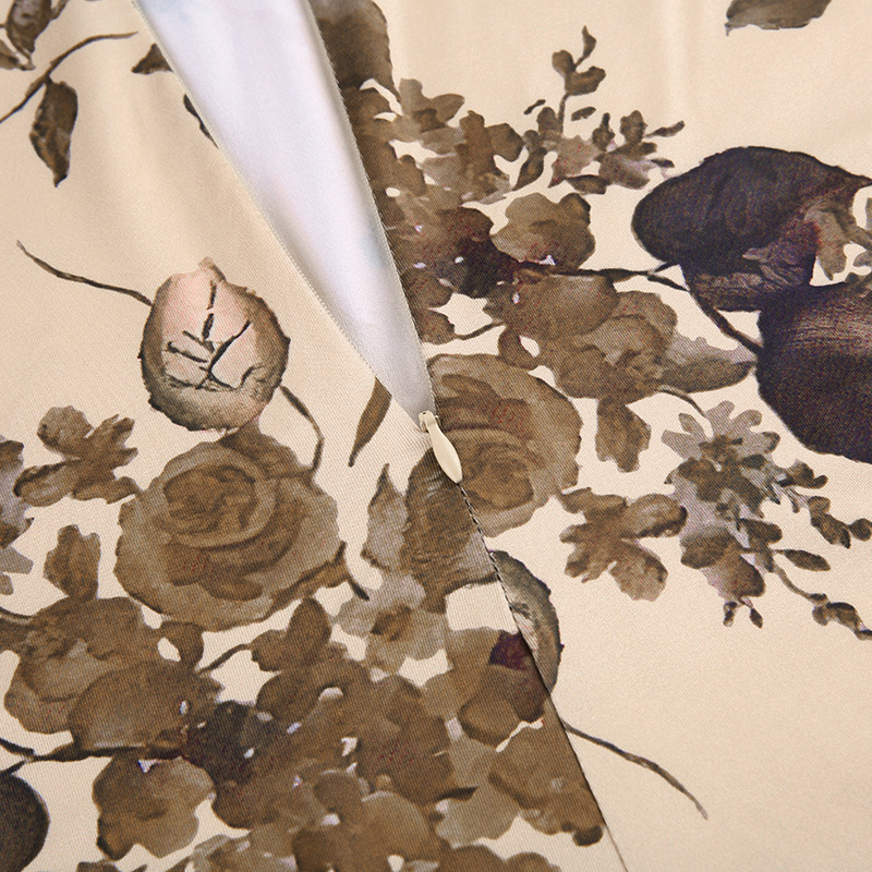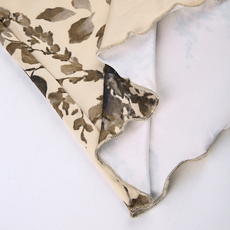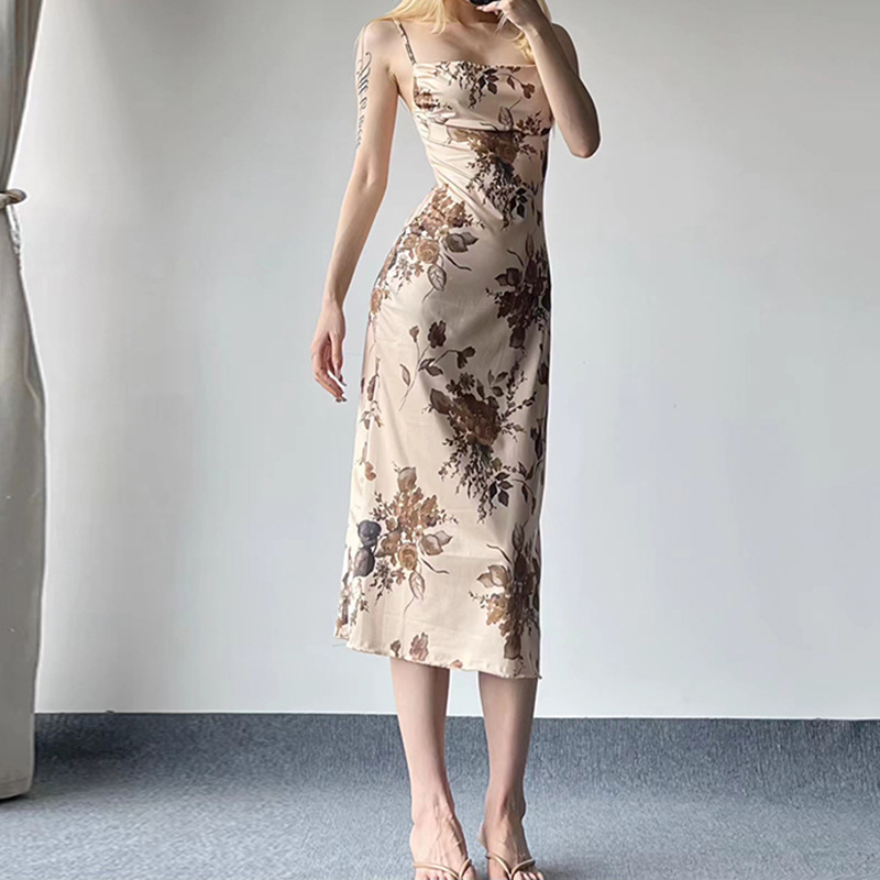Women Retro Printed Suspender Dress Waist Controlled Slimming Zipper Off Neck Tube Top Dress