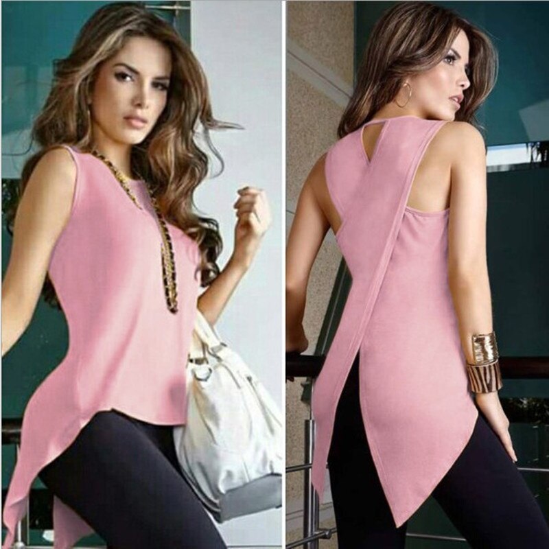Sleeveless O Neck Slim Fit Irregular Patchwork Solid Blouse