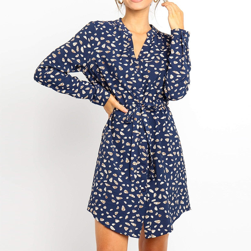 This stunning mini dress is ideal for summer. It’s long-sleeve, the pattern is print. The dress can be worn on any occasion, especially at casual parties and gatherings. The material of the dress is polyester and chiffon.