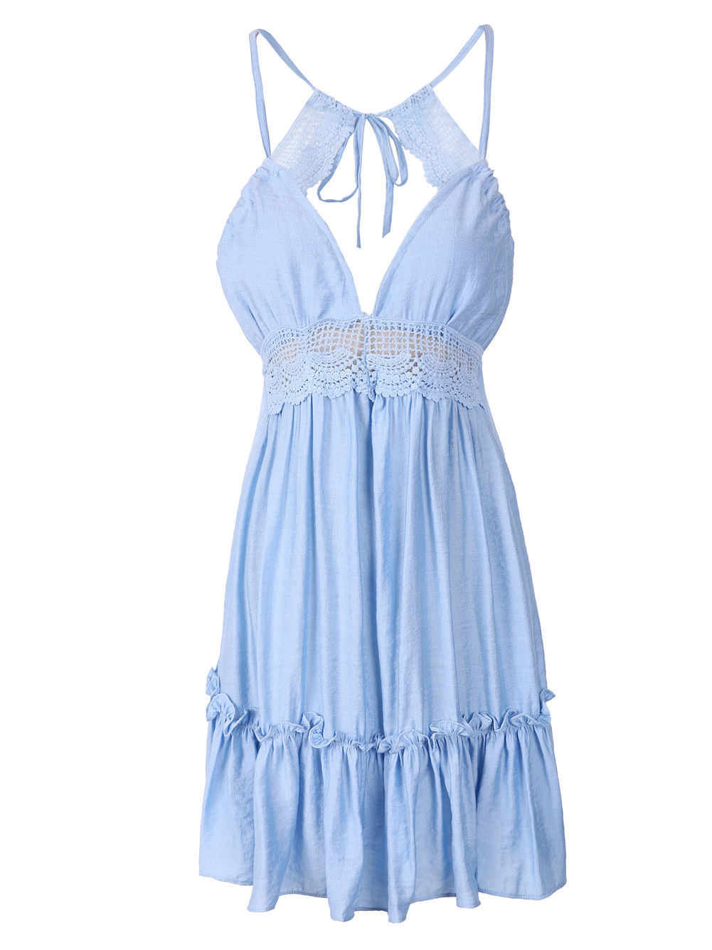 2019 Sexy Women Summer Lace Floral V-neck Mini Dress Evening Party Beach Dress Sundress Fashion Bandage Backless Bodycon Dresses