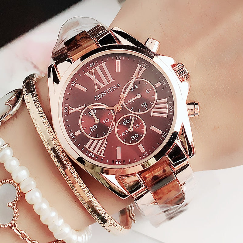 Quartz Brown Ladies Wrist watches Geneva Designer Gifts For Women