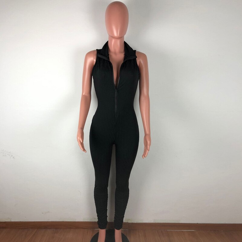 Elastic Hight Casual Fitness Sporty Rompers Sleeveless Zipper Jumpsuit