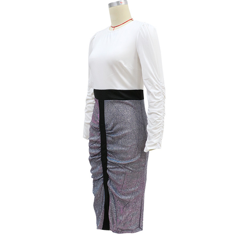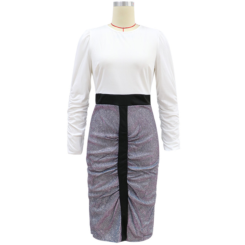 2021 Spring Women Clothing New round Neck Long Sleeve Pencil Skirt Slim Mid Skirt