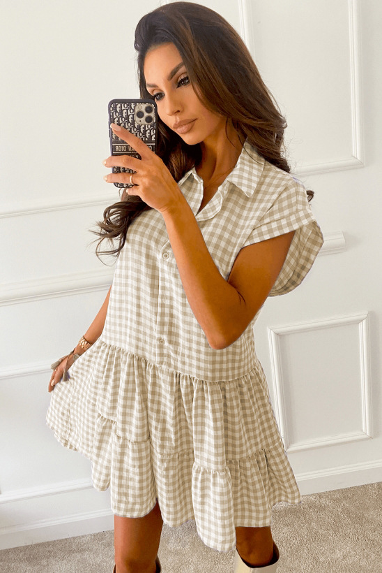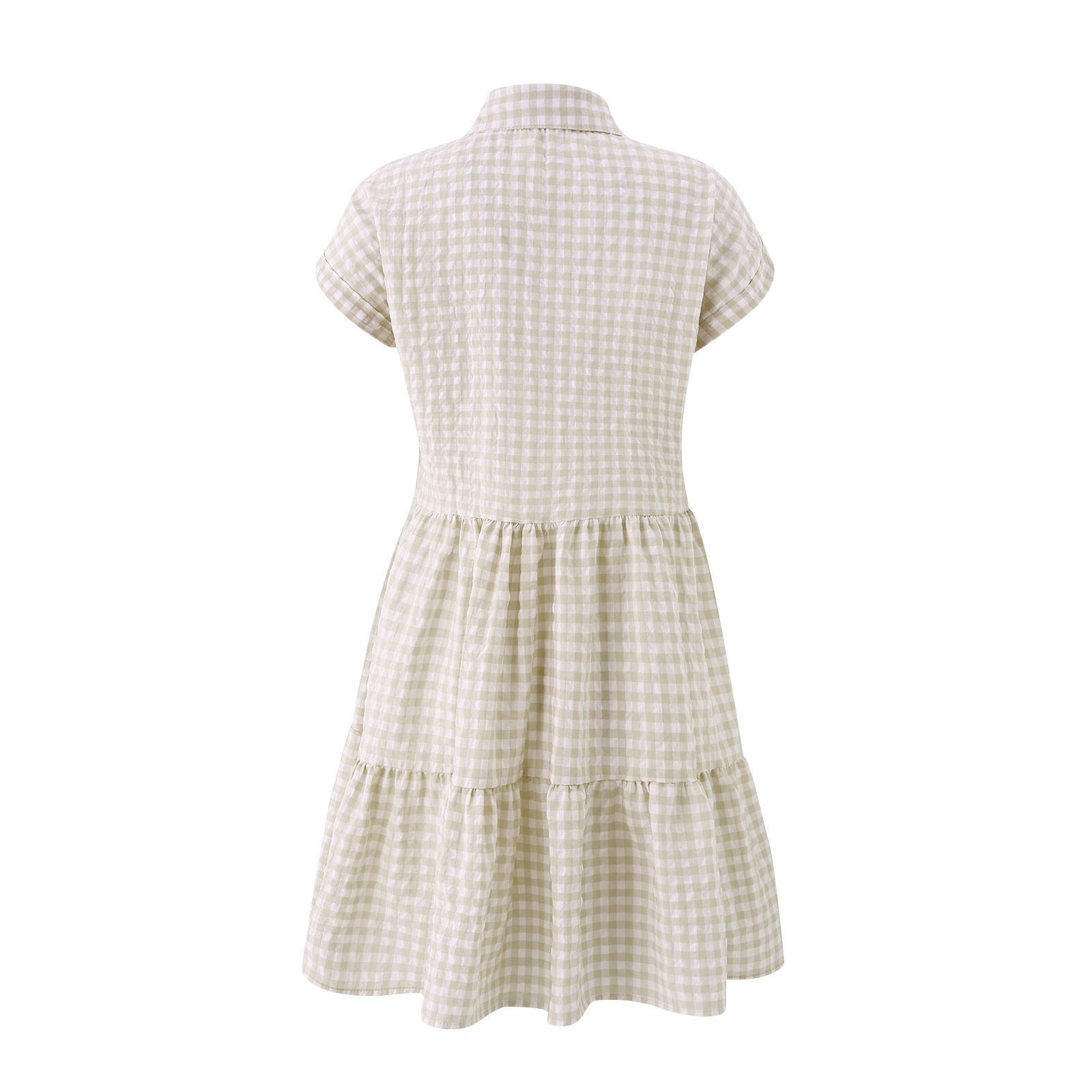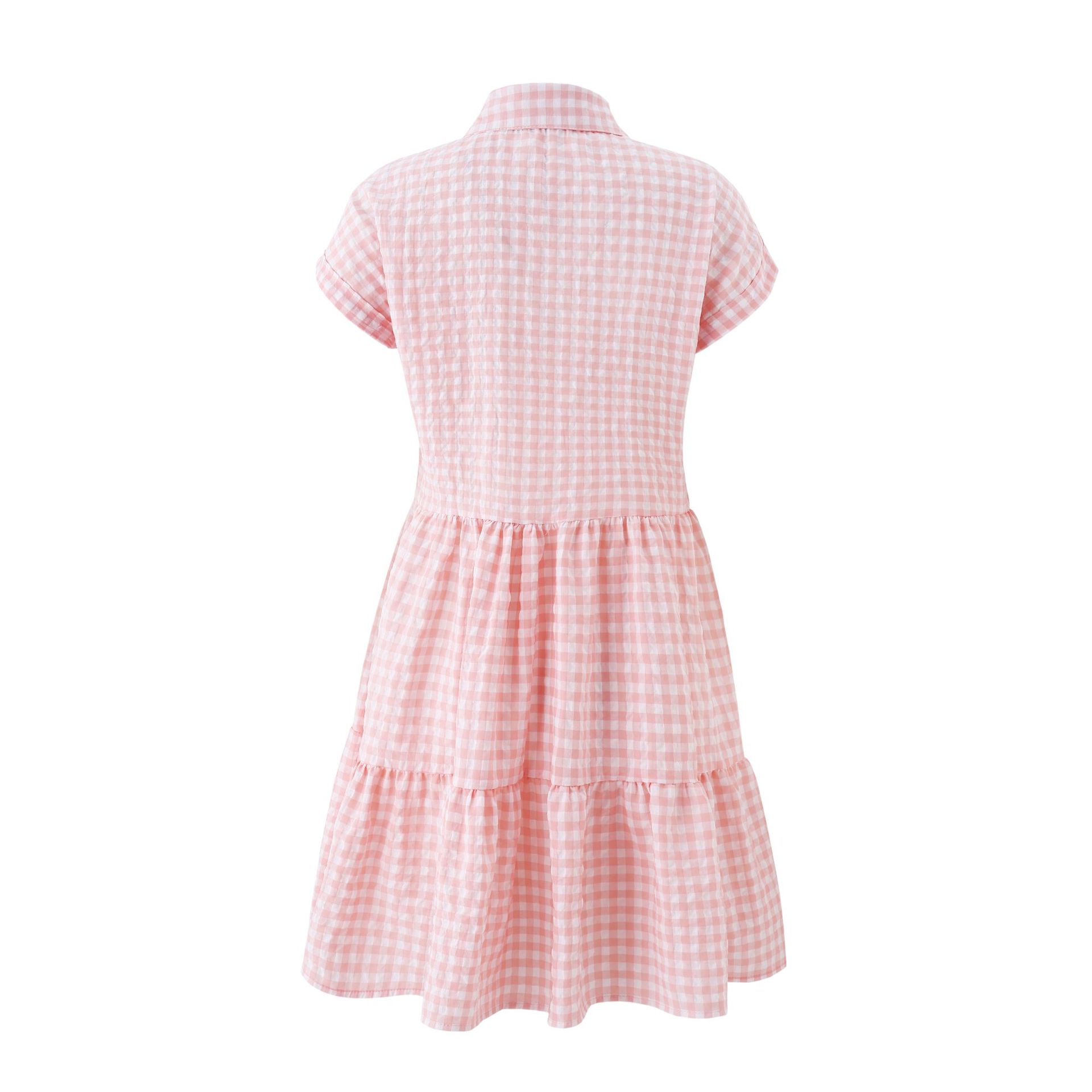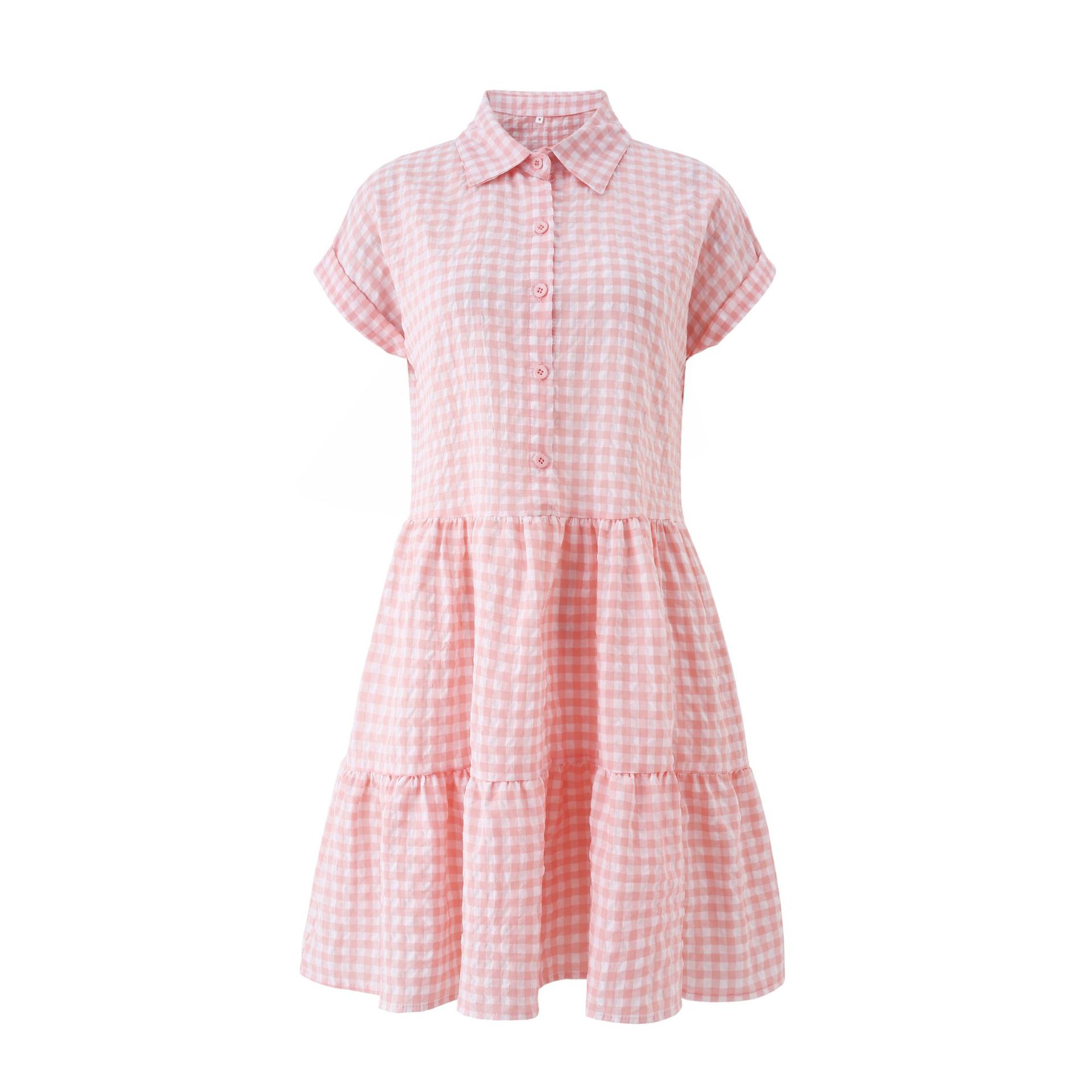 2021 Summer Loose Short Sleeve Collar Stitching Plaid Dress