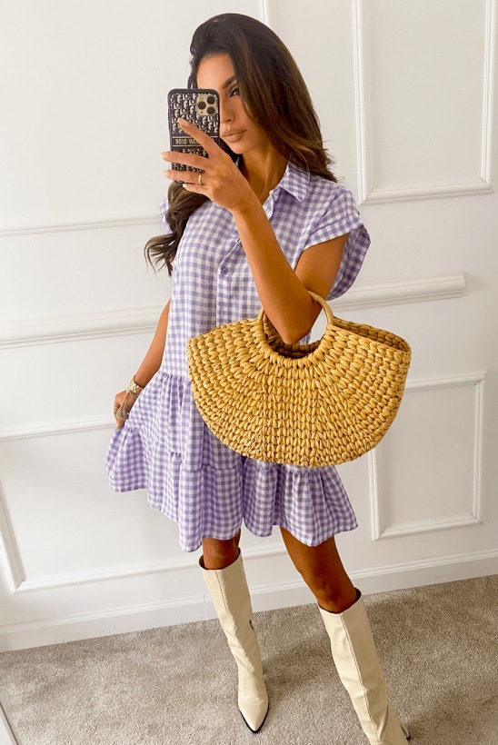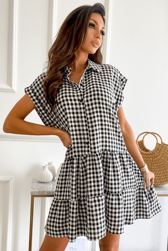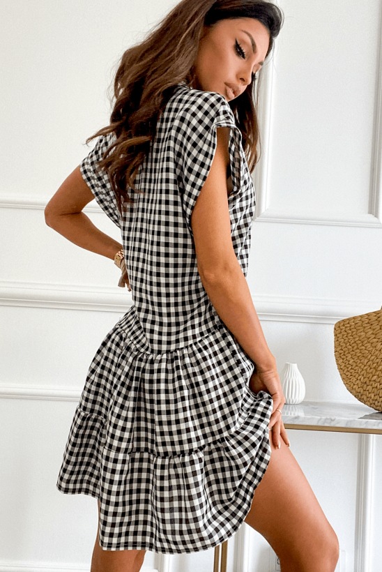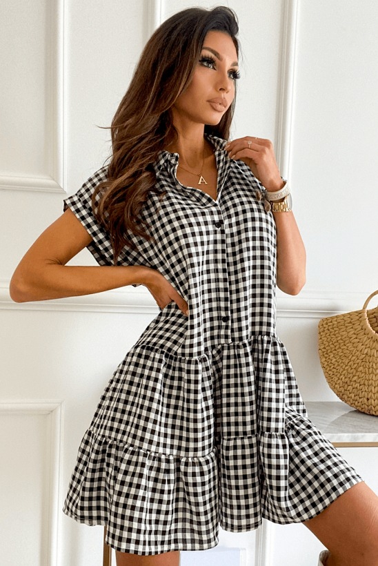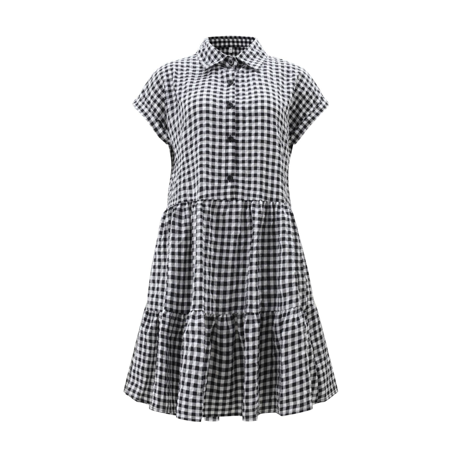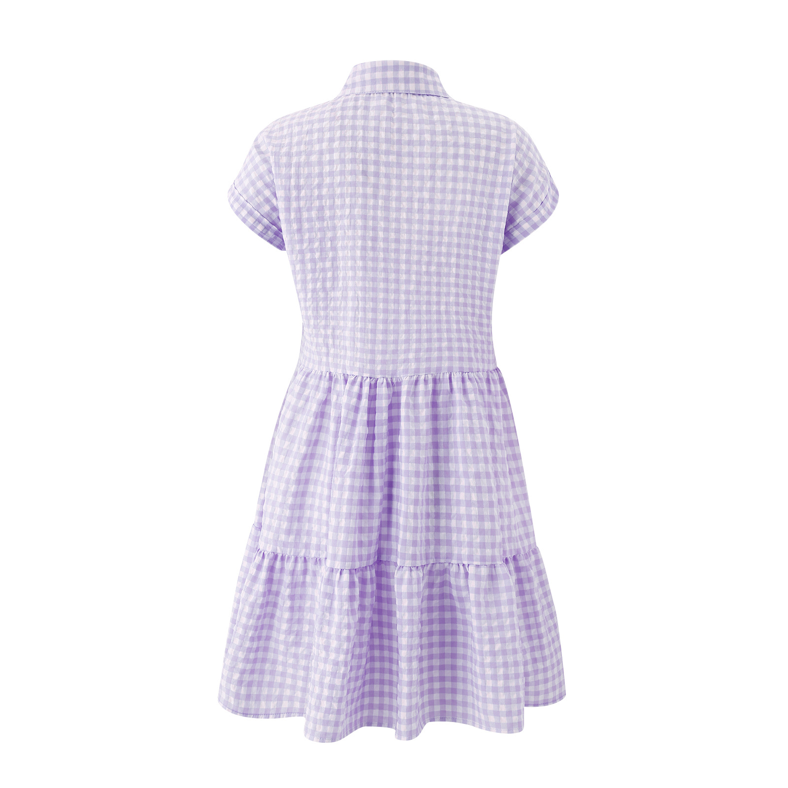 2021 Summer Loose Short Sleeve Collar Stitching Plaid Dress