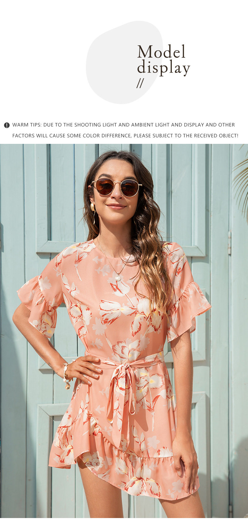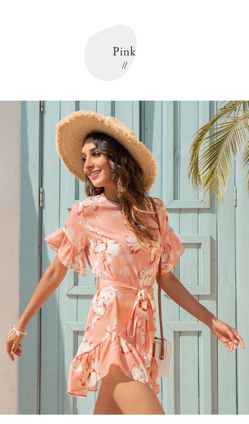 2021 Summer New Product Women Clothes round Neck Fashion Lady Floral Flounce Jumpsuit Skirt
