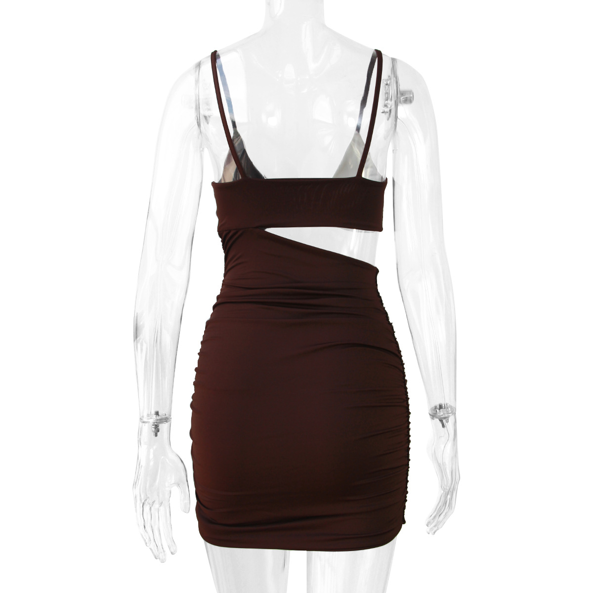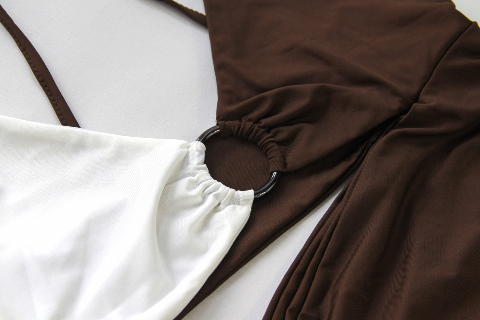 2021 Summer Women Dress Sexy V-neck Strap Hip Skirt Color-Matching Dress