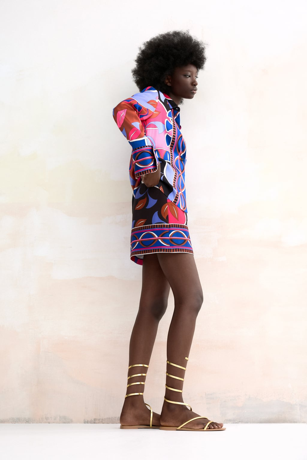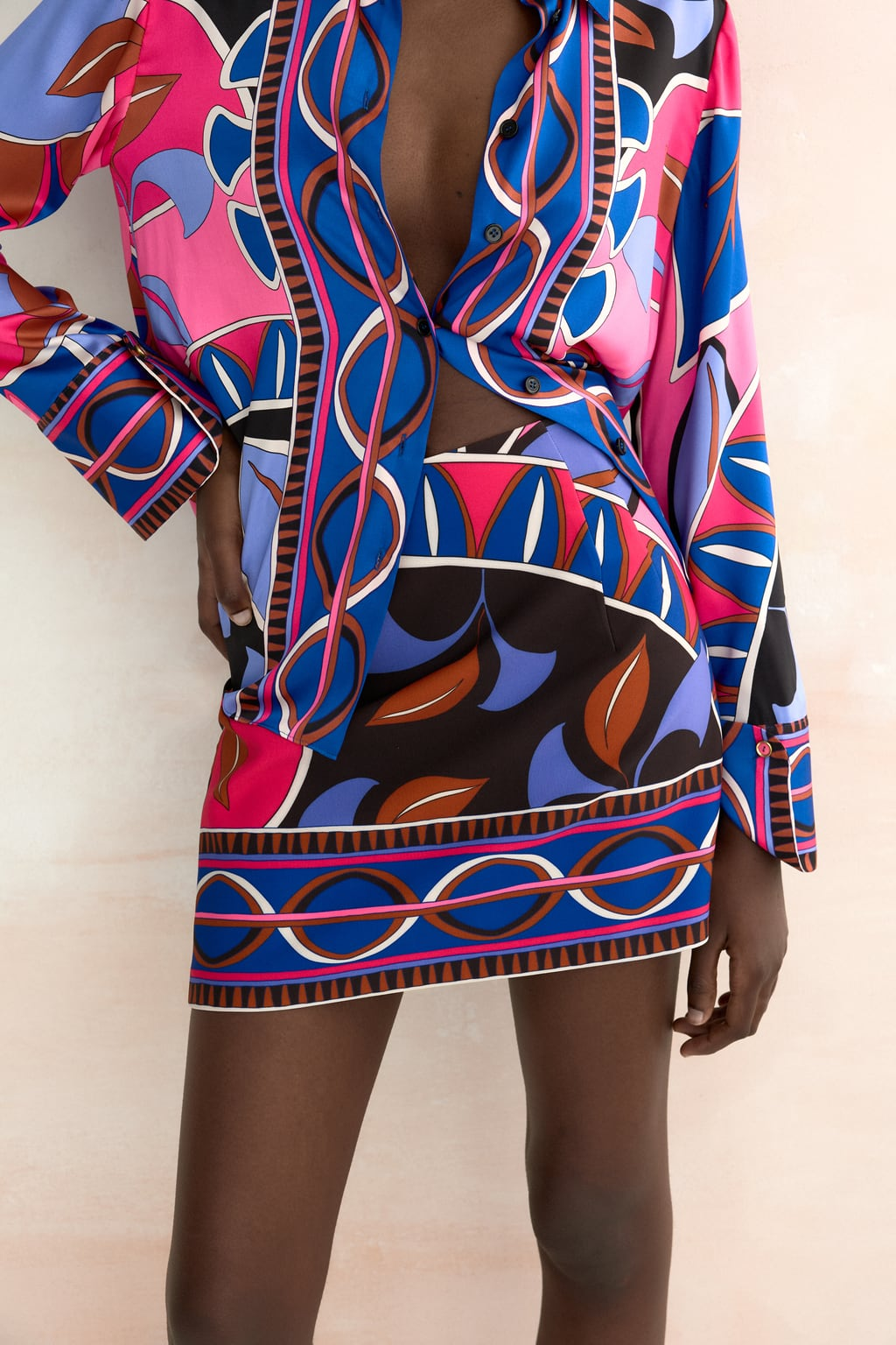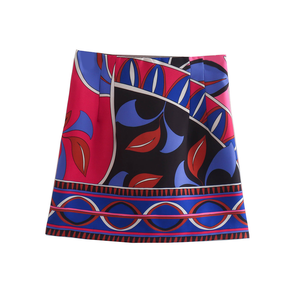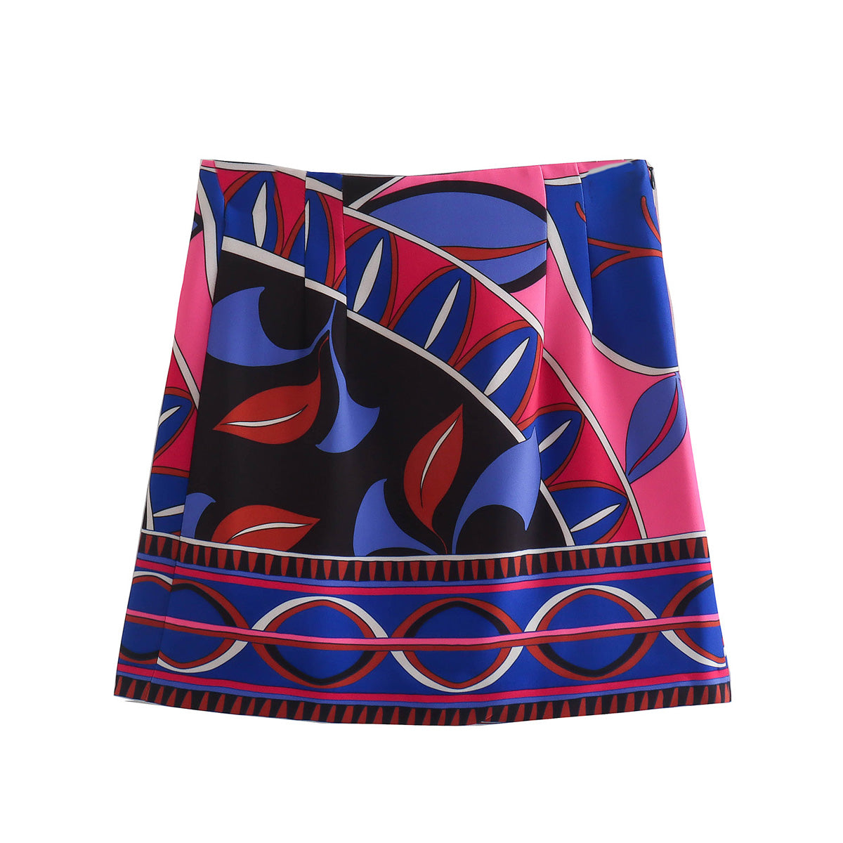2022 Summer New Fashion Elegant Style Blue Printing Slim Fit Slimming Skirt Female