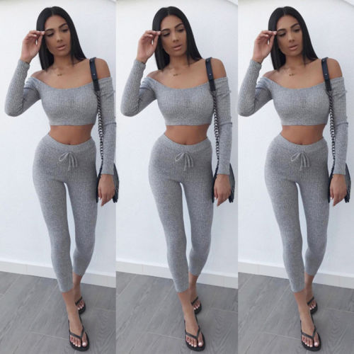2Pcs Women Sportswear Tracksuit Hoodies Sweatshirt Slim Long Pants
