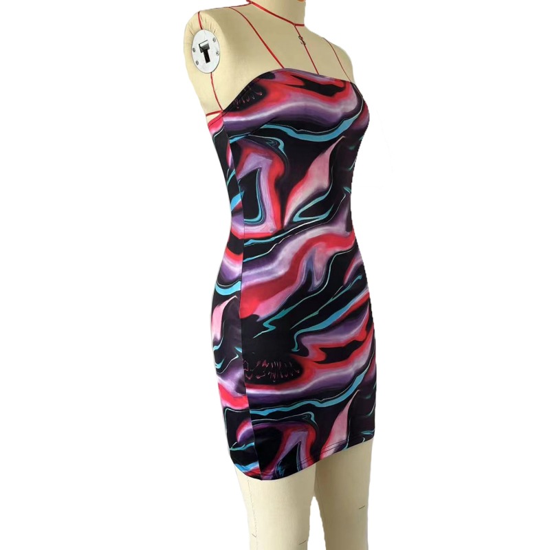 Arrival Color Printed Sexy Sexy Tube Top Backless Slim Sheath Dress for Women
