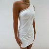 CHRONSTYLE Ruffles Patchwork White Color Sexy Women Dress 2021 Off Shoulder Single Tank Bodycon Party Formal Mini Pencil Dress