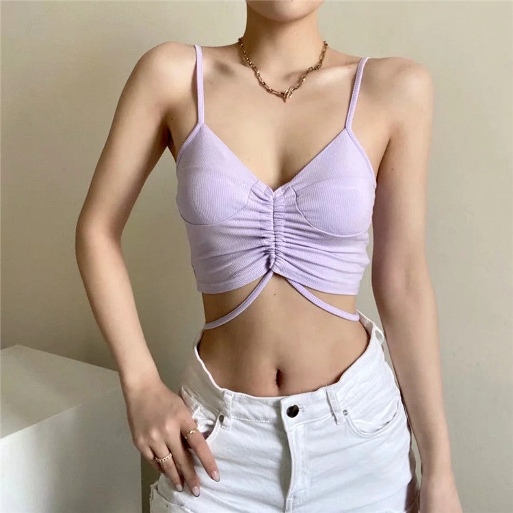 Elegant Sexy Waist Strap Design Vest Summer Women Clothing Style Stretch Slim Short Sleeveless Top
