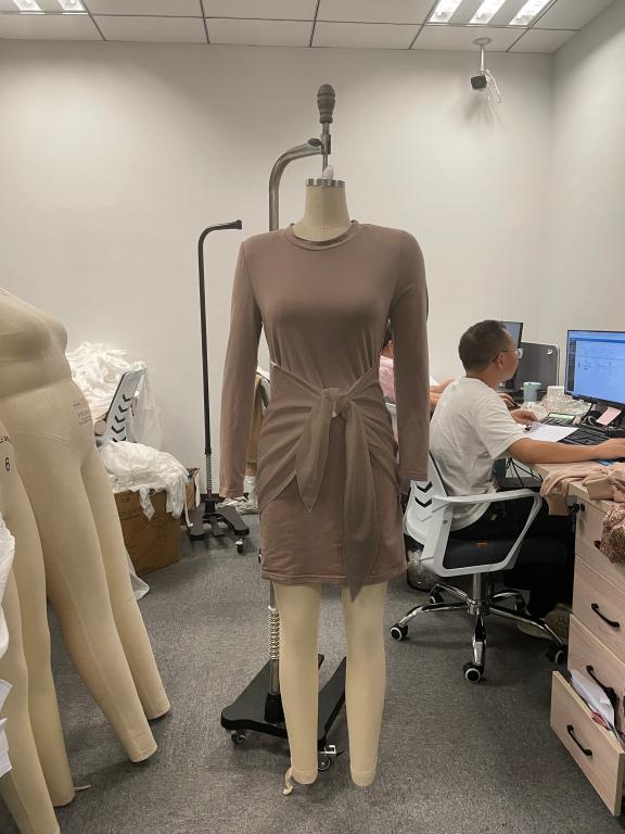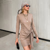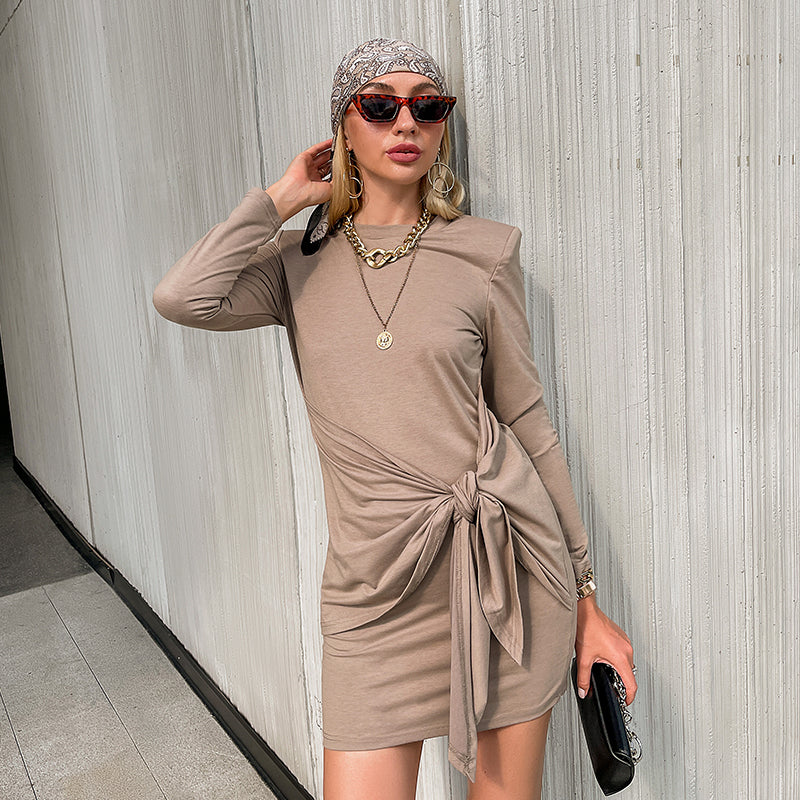 Fashion Lace Up Dress Women Casual Long Sleeves O Neck Wraped Mini Dress High Street Office Lady Long Tops 2021 Autumn