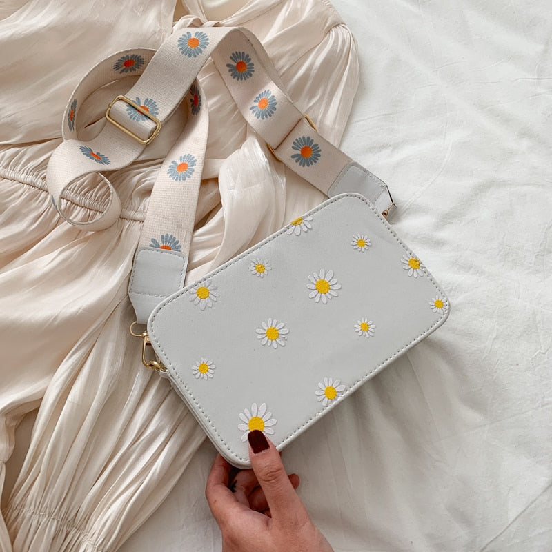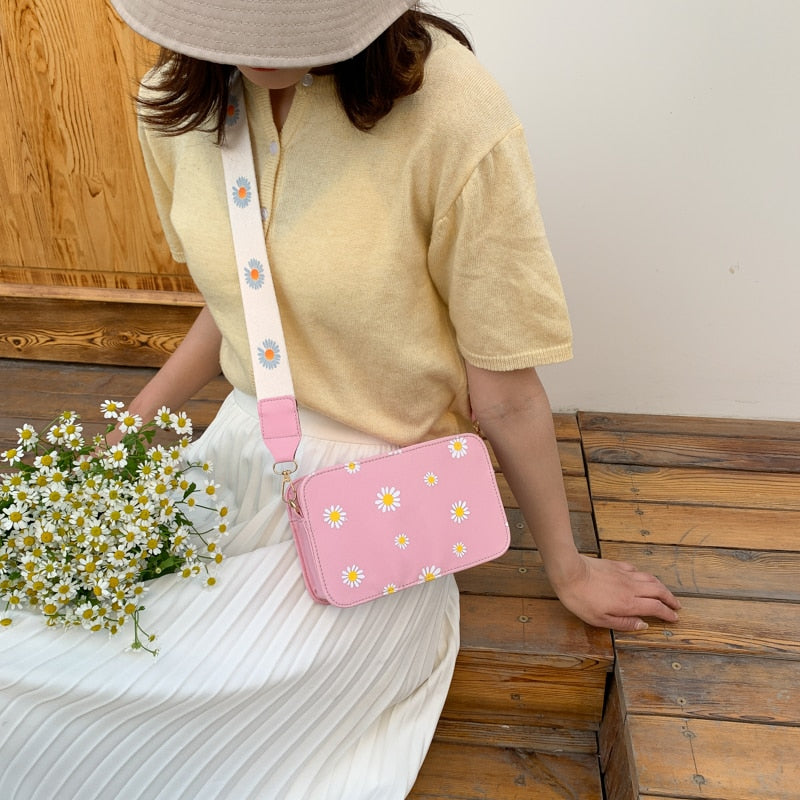 Korean wide shoulder strap flower bag single shoulder small square bag