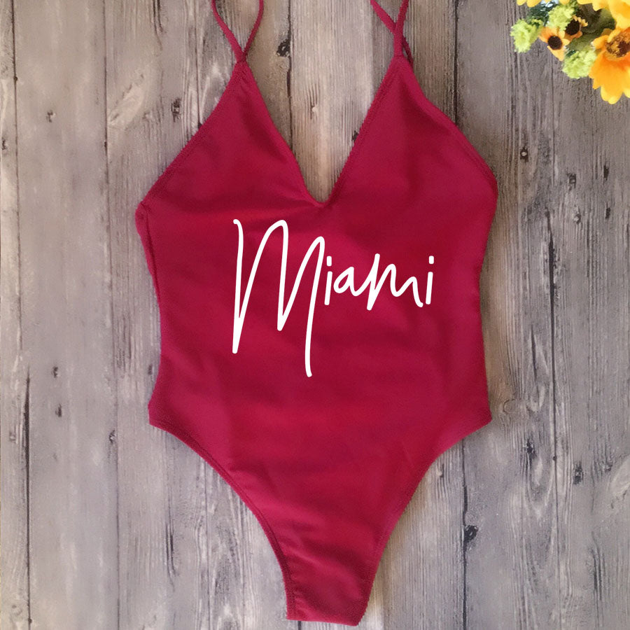 Thong Padded Sexy One Piece Swimsuit Miami HOLA Fused Swimwear Backless Bather Beachwear