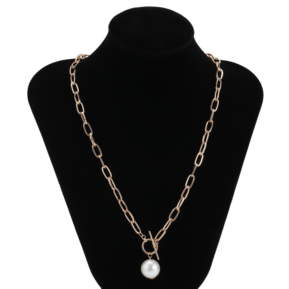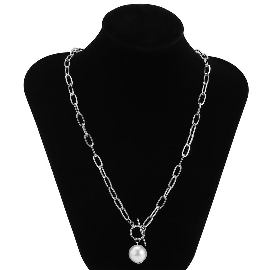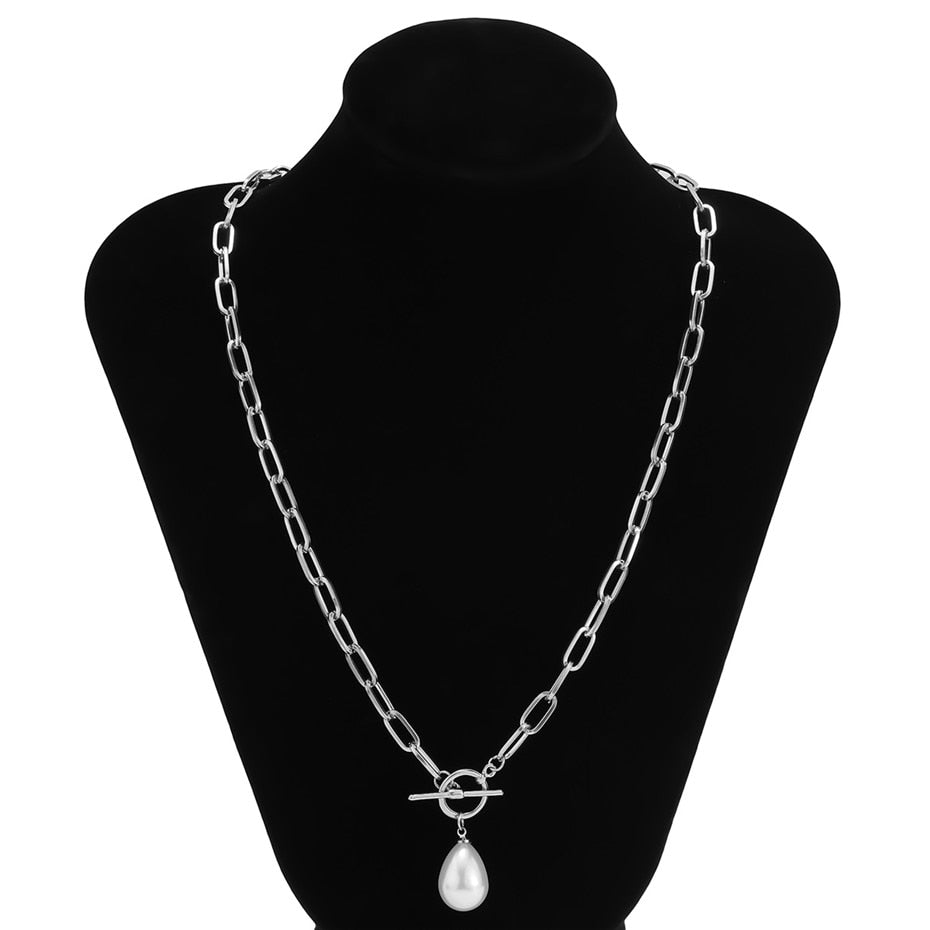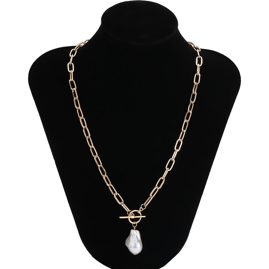 Goth Baroque Pearl Pendant Choker Necklace for Women