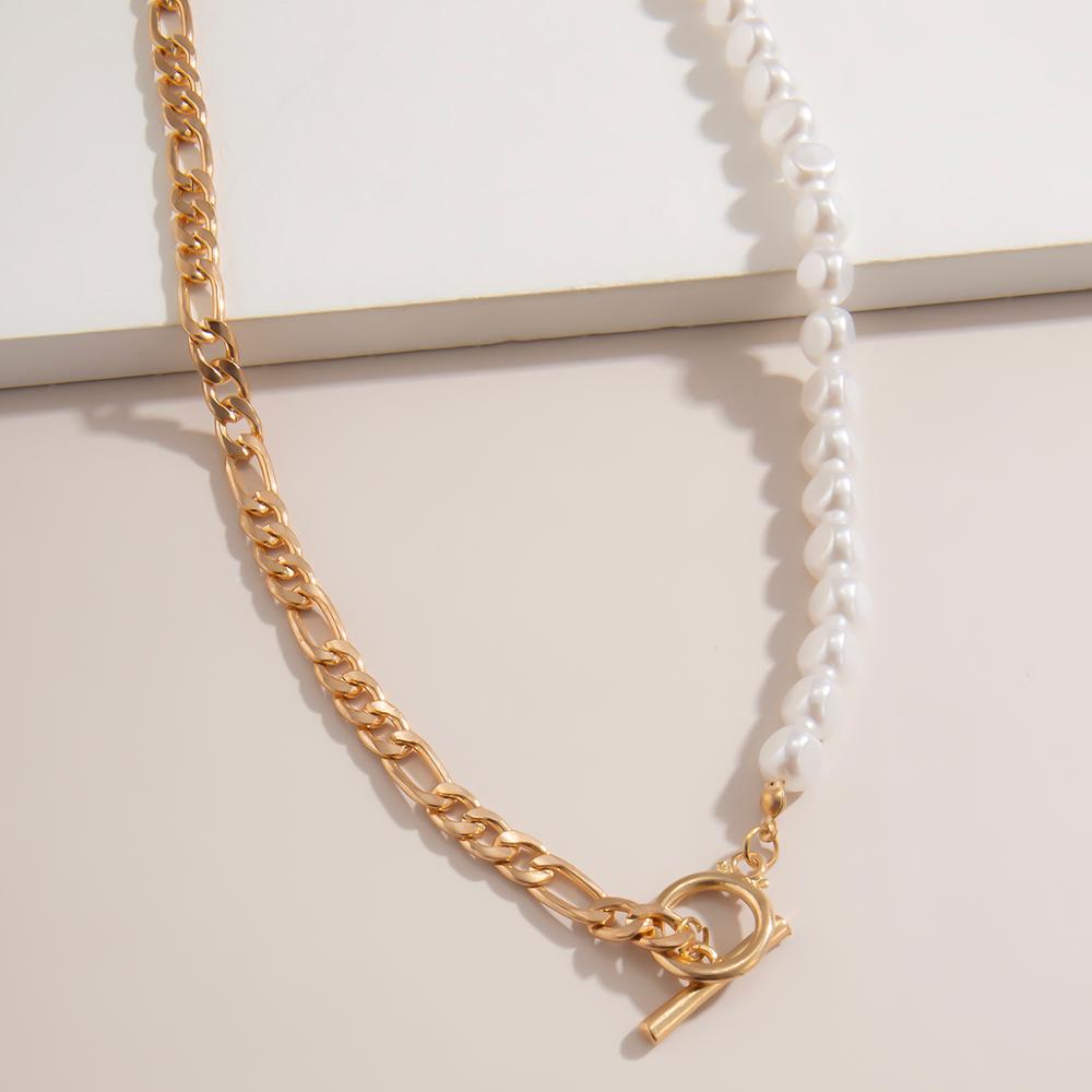 Goth Baroque Pearl Toggle Clasp Chain Necklace Women Wedding Collares Minimalist Circle Lariat Choker Necklaces