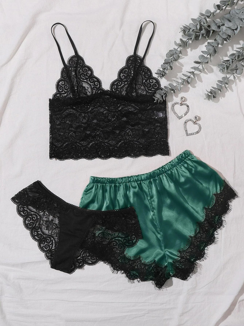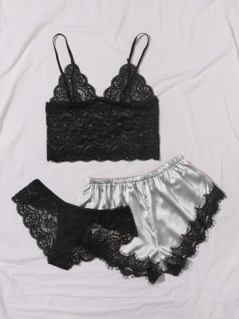 Hot Sexy Lingerie Home Nightdress Sexy Lace Sling Pajamas Three-Piece Set