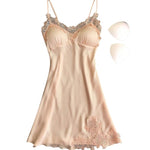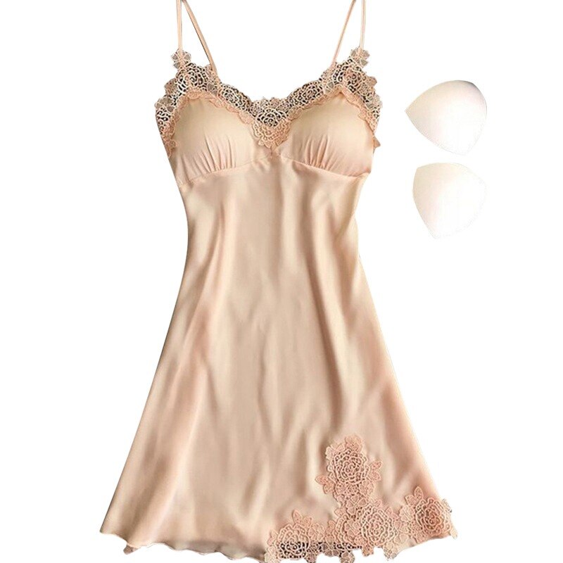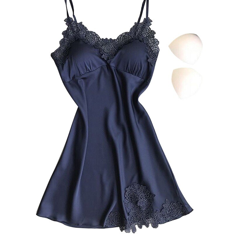 Ladies Sexy Silk Satin Night Dress Sleeveless Nighties V-neck Nightgown Nightdress Lace Sleepwear Nightwear For Women S-XL