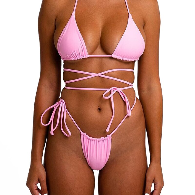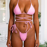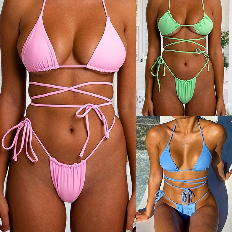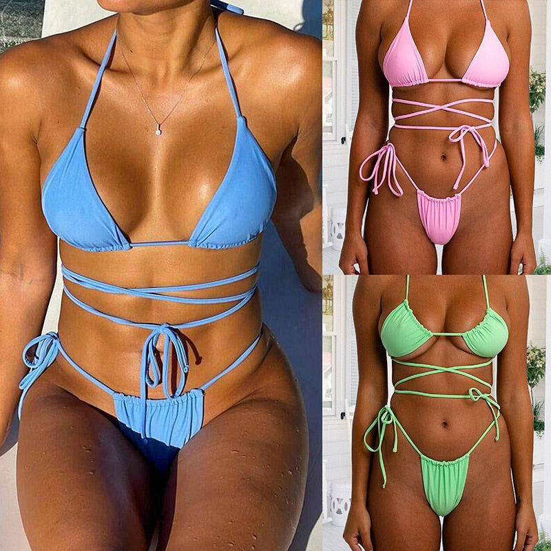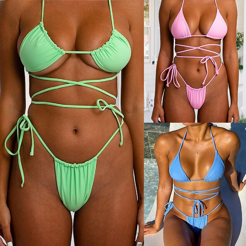 Push-up Bra Bikini Set Solid Color Bandage Swimming Suit Outdoor Summer Beachwear Bathing Suit