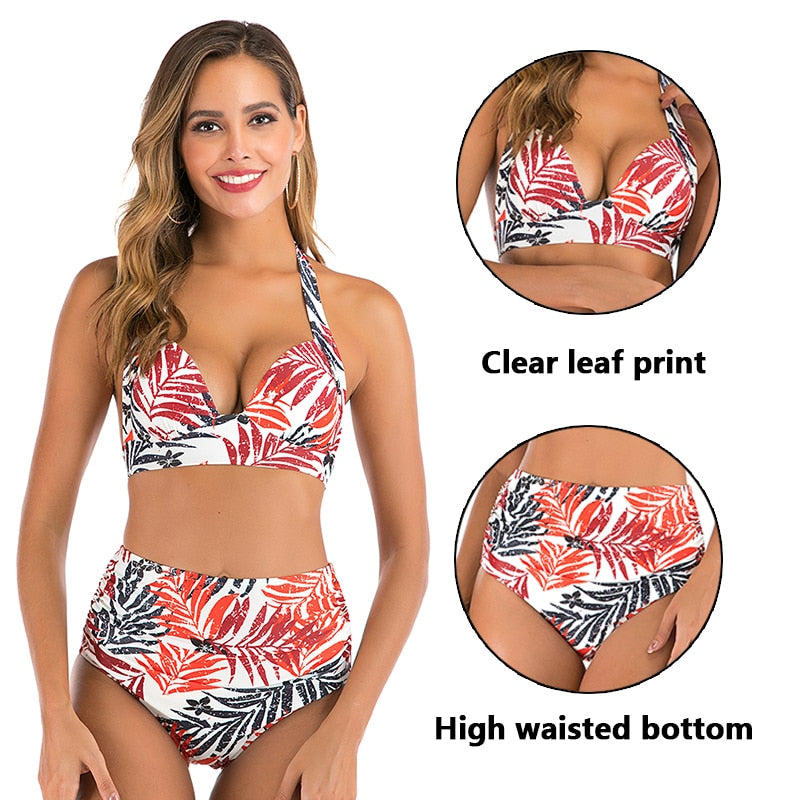 High waist bikini set Halter bathing suit woman swimsuit female Plus size bikini 3XL Floral print swimwear women
