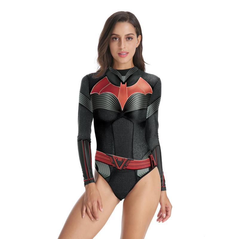 3D Printed Superheros Swimsuits Cosplay Batwoman Swimwear Long Sleeve Rash Guard Swimming Surfing Shirt