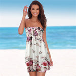 Bohemia Floral Print Dress Sundress Sexy Chest Wrap Elastic Mini Dress