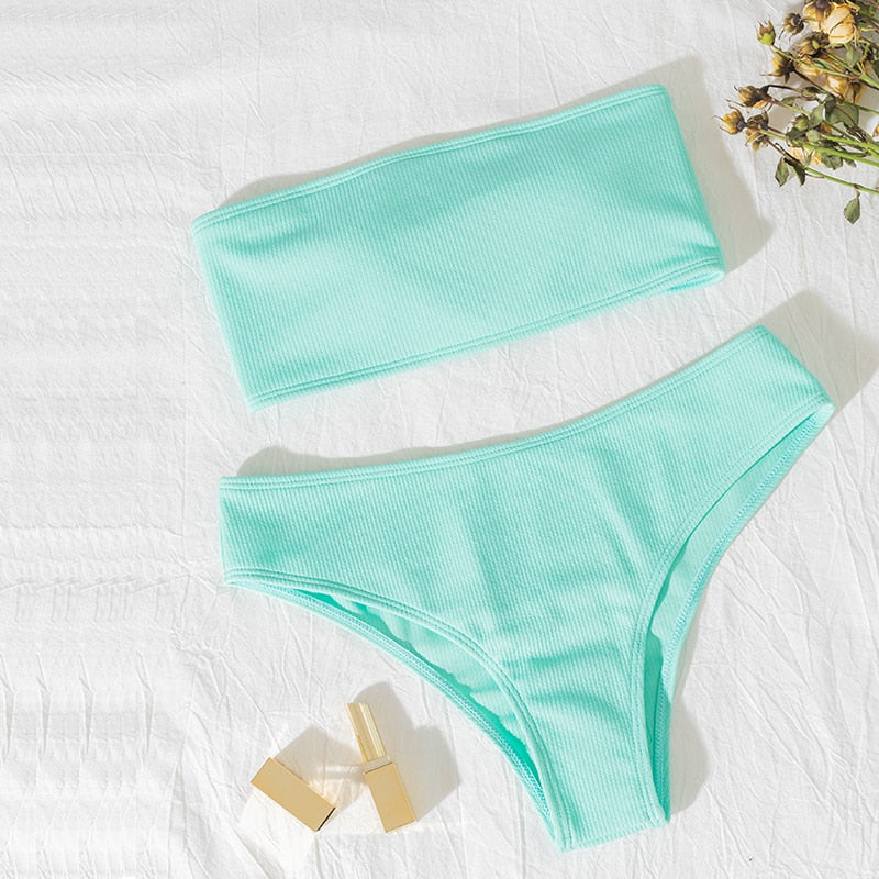 High Waist Strapless Sexy Bikini Swimwear Women Swimsuit Padded Bathing Suit Pure Color