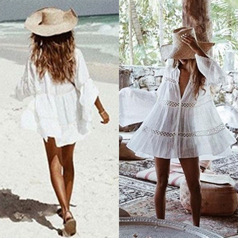 New Bikini Women Cover Up Lace Hollow Crochet Swimsuit Beach Dress Women Summer Ladies Cover-Ups Bathing Suit Beach Wear Tunic