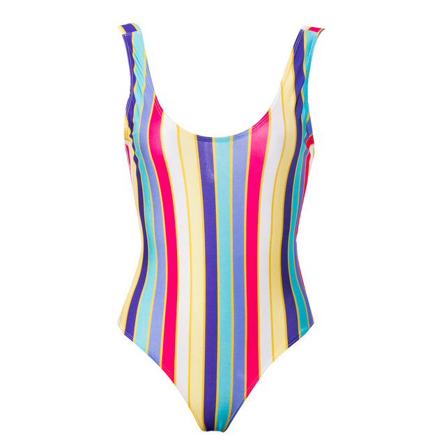 New Summer Women Backless High Waist Fashion Beach Swimsuit Swimwear Bathing Monokini Push Up Rainbow Striped Bikini Hot S M L