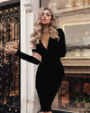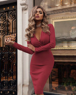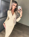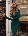 New trendy solid slim Women Holiday V Neck Long Sleeve Bodycon Ladies Party spring Summer Beach Midi Dress