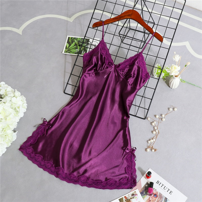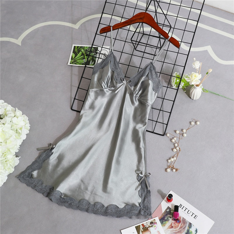Night Dress Women Sexy Sleepwear Lace Summer Nightdress Homewear Nightwear Silk Sleeveless Women's Nightgown Size M-XXL Dresses