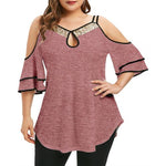 Shoulder Ruffled Sleeve Irregular Hem Blouse