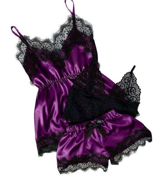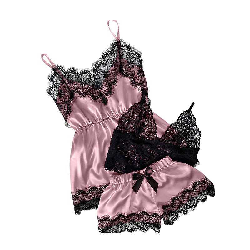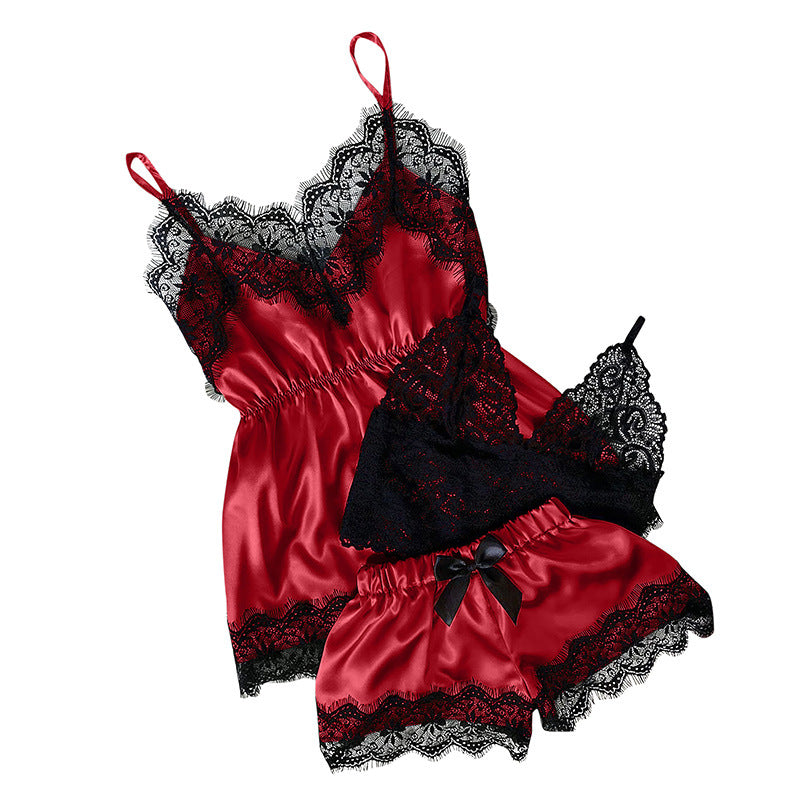 Satin Sexy Lingerie Lady Sexy Nightdress Lace Suspender Shorts Pajamas Suit Plus Size
