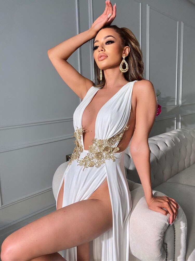 Sexy Deep V Neck High Split Evening Cocktail Maxi Dress Women Backless Embroidery Beading Long Formal Wedding Party Dress
